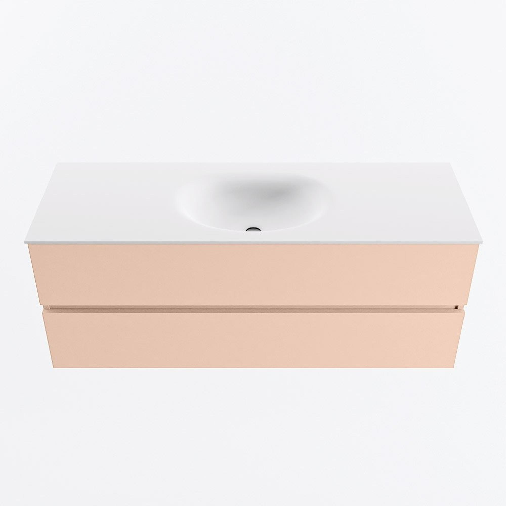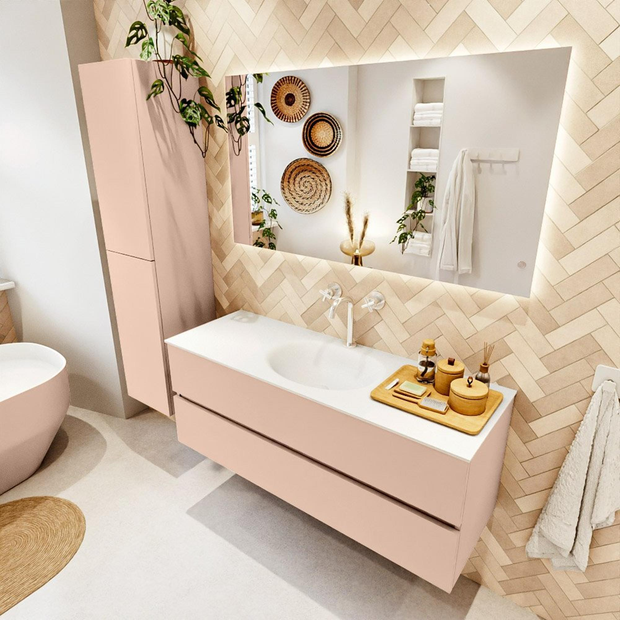 MONDIAZ VICA Ensemble meuble de salle de bains - 130cm - meuble bas rosee - 2 tiroirs - lavabo moon au centre - 1 trou de robinet - version haute 60cm - talc