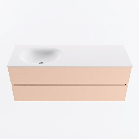 MONDIAZ VICA Ensemble meuble de salle de bains - 130cm - meuble bas rosee - 2 tiroirs - vasque moon à gauche - 1 trou de robinet - version hauteur 60cm - talc