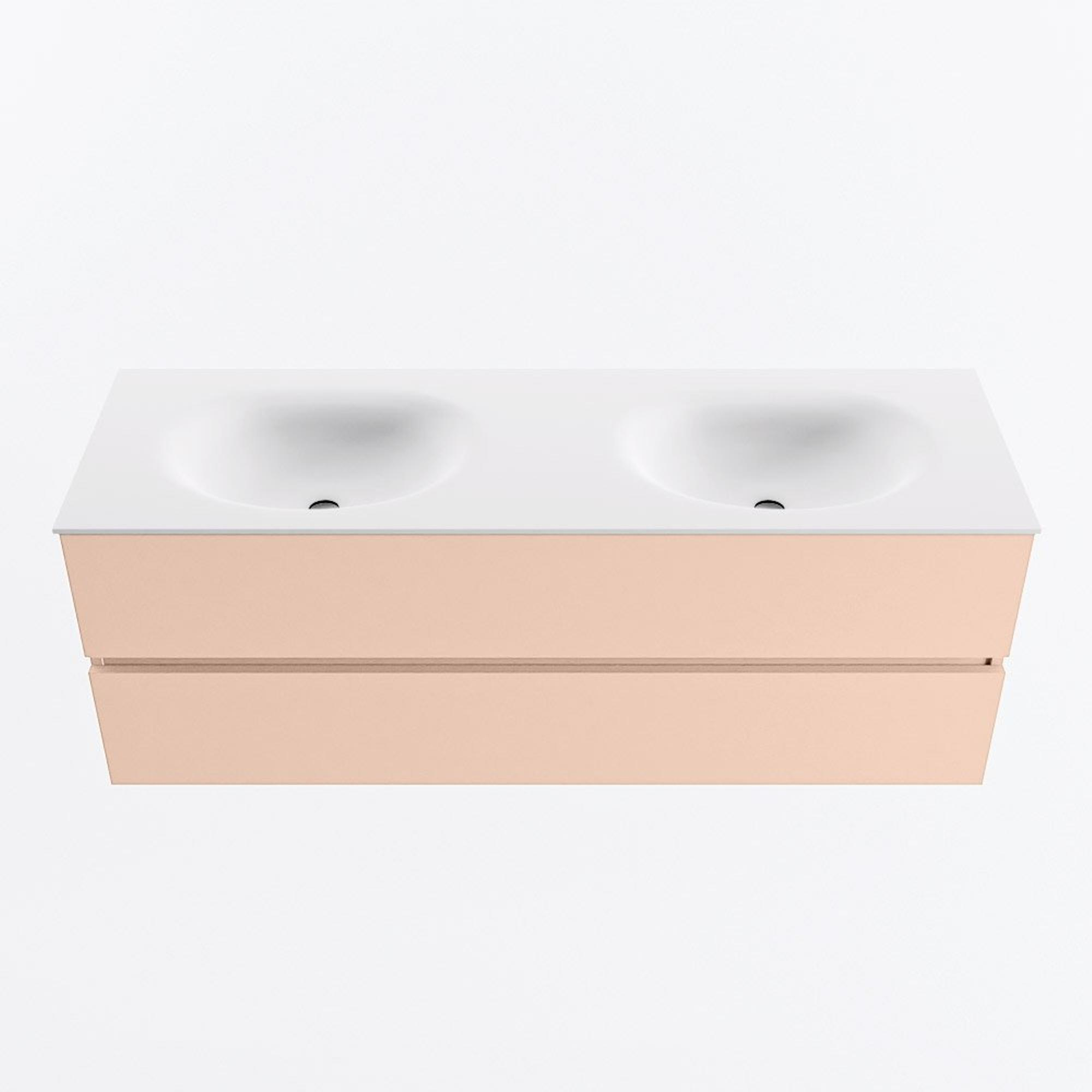 MONDIAZ VICA Ensemble meuble de salle de bains - 140cm - sous-élément rosee - 2 tiroirs - lavabo moon double - 2 trous de robinet - version haute 60cm - talc