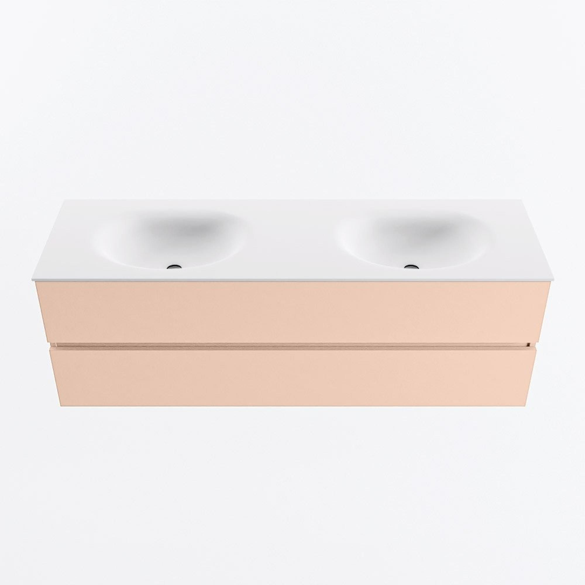 MONDIAZ VICA Ensemble meuble de salle de bains - 150cm - meuble sous-vasque rosee - 2 tiroirs - lavabo moon double - 2 trous de robinet - version haute 60cm - talc