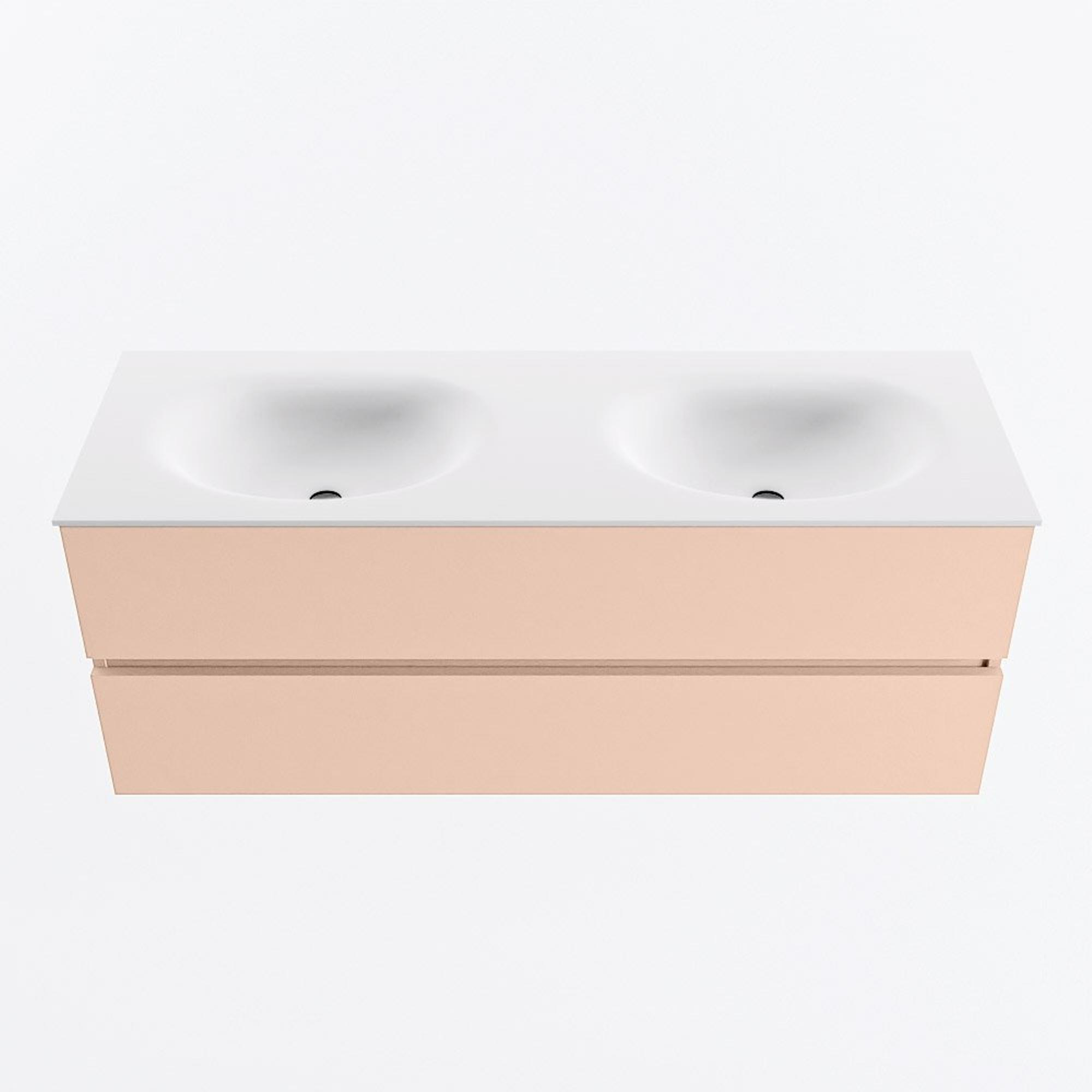 Mondiaz VICA ensemble de meuble de salle de bain - 130cm - meuble sous-vasque rosee - 2 tiroirs - lavabo moon double - sans trous de robinet - version haute de 60cm - talc