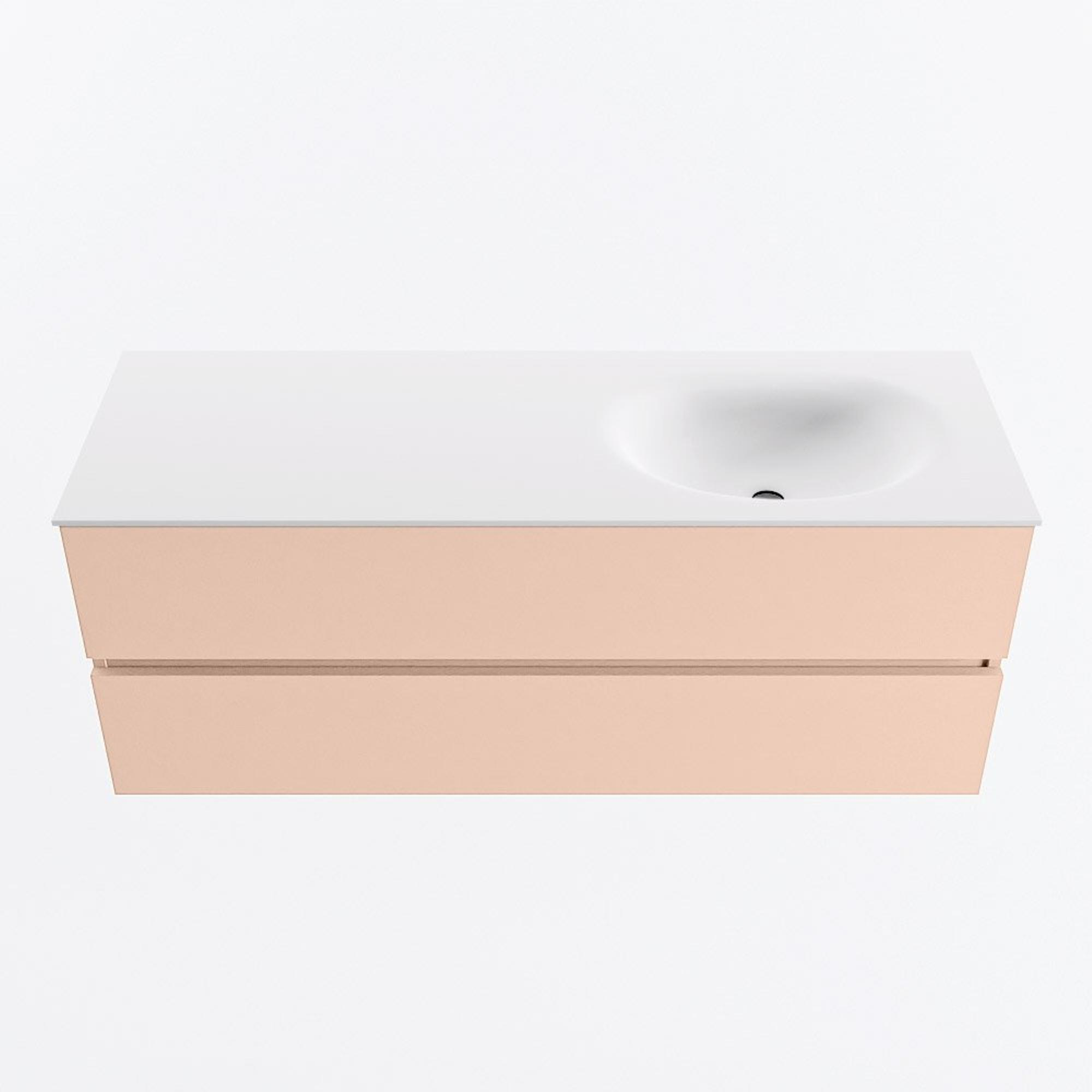 MONDIAZ VICA Ensemble meuble de salle de bains - 130cm - meuble bas rosee - 2 tiroirs - lavabo moon à droite - sans trous de robinet - version hauteur 60cm - talc