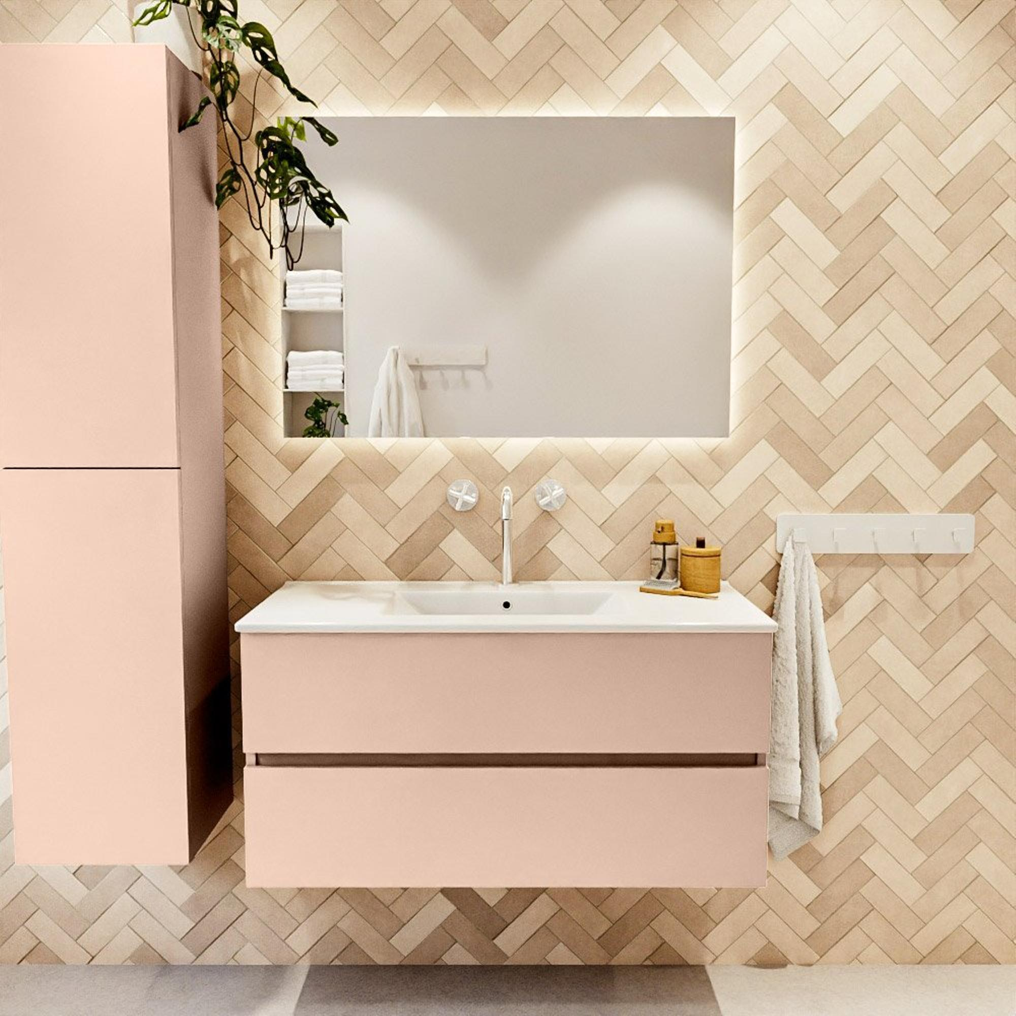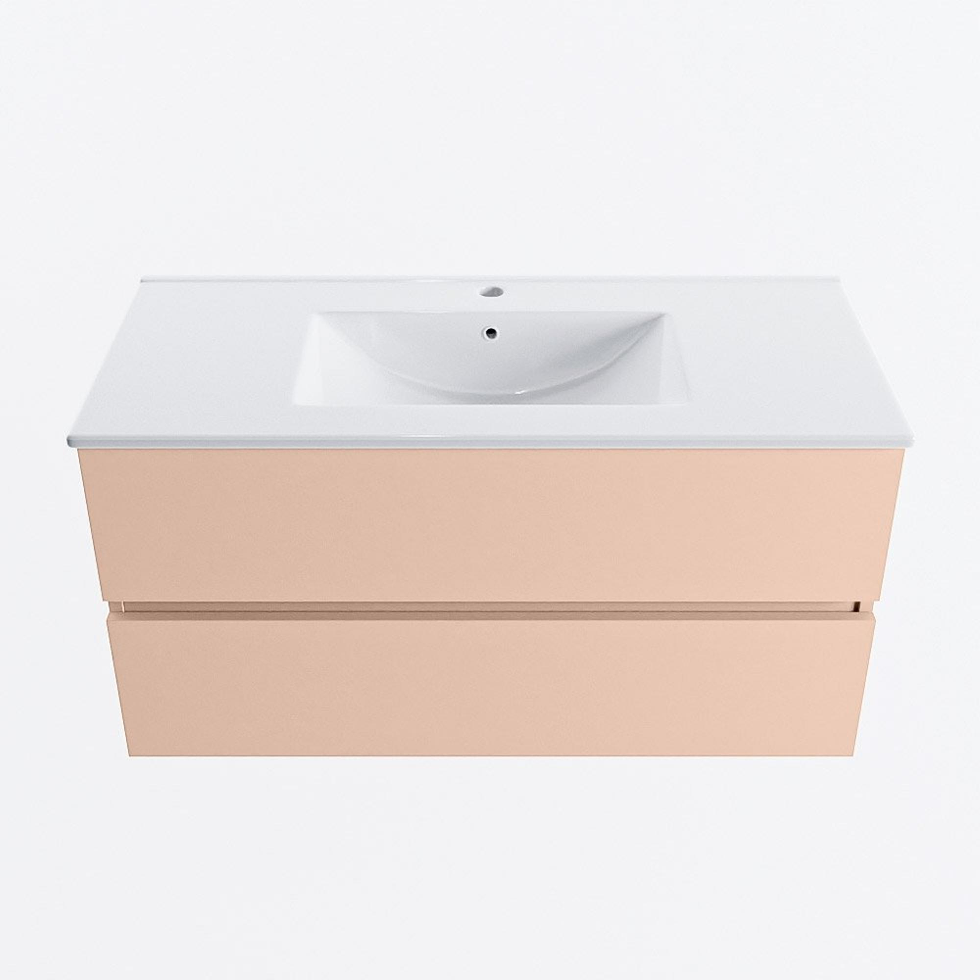 MONDIAZ VICA Ensemble meuble de salle de bains - 100cm - meuble bas rosee - 2 tiroirs - lavabo denia central - 1 trou de robinet - version haute 60cm - blanc brillant