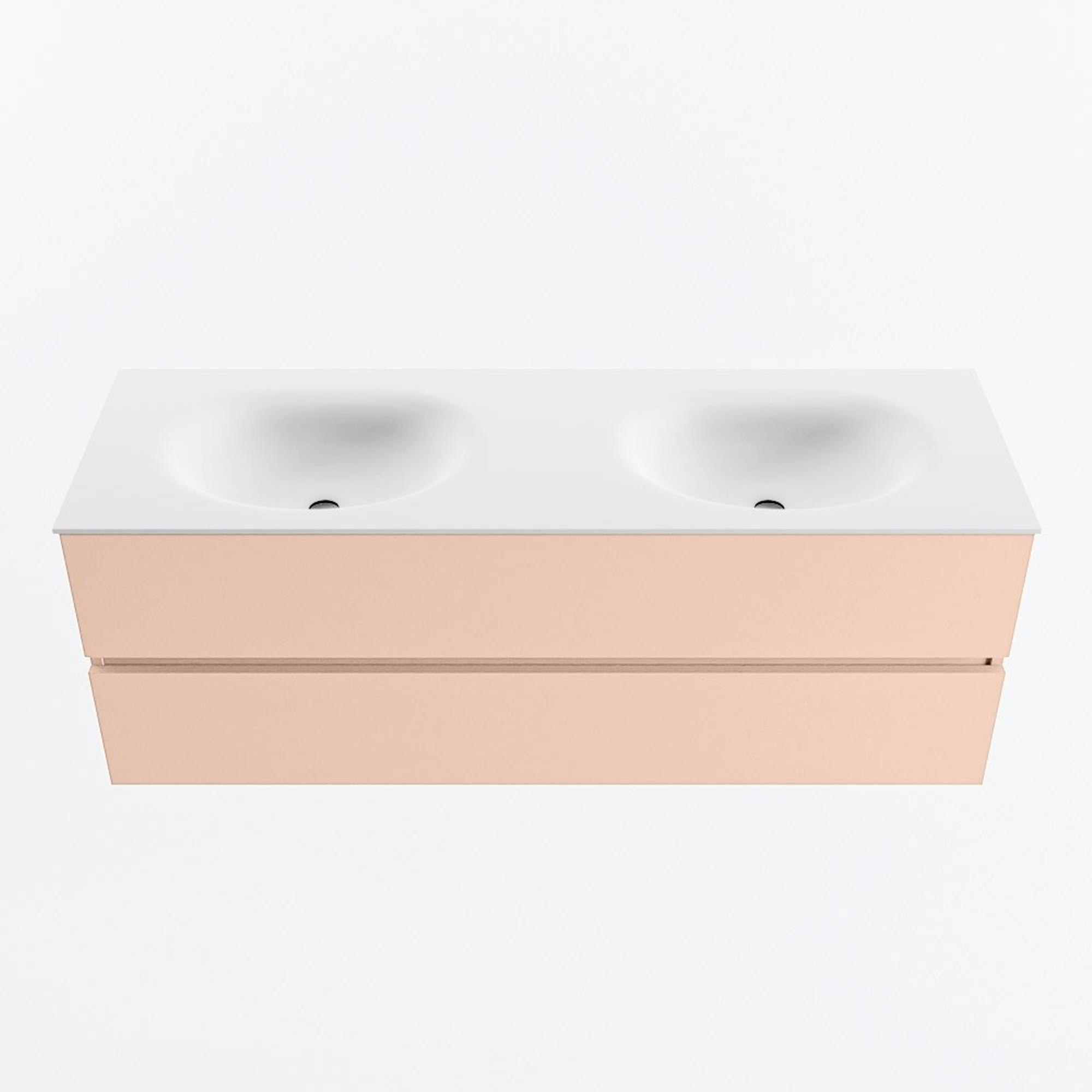 MONDIAZ VICA Ensemble meuble de salle de bains - 140cm - sous-meuble rosee - 2 tiroirs - lavabo moon double - sans trous de robinet - version haute 60cm - talc