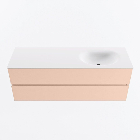 MONDIAZ VICA Ensemble meuble de salle de bains - 140cm - sous-meuble rosee - 2 tiroirs - lavabo moon à droite - 1 trou de robinet - version hauteur 60cm - talc