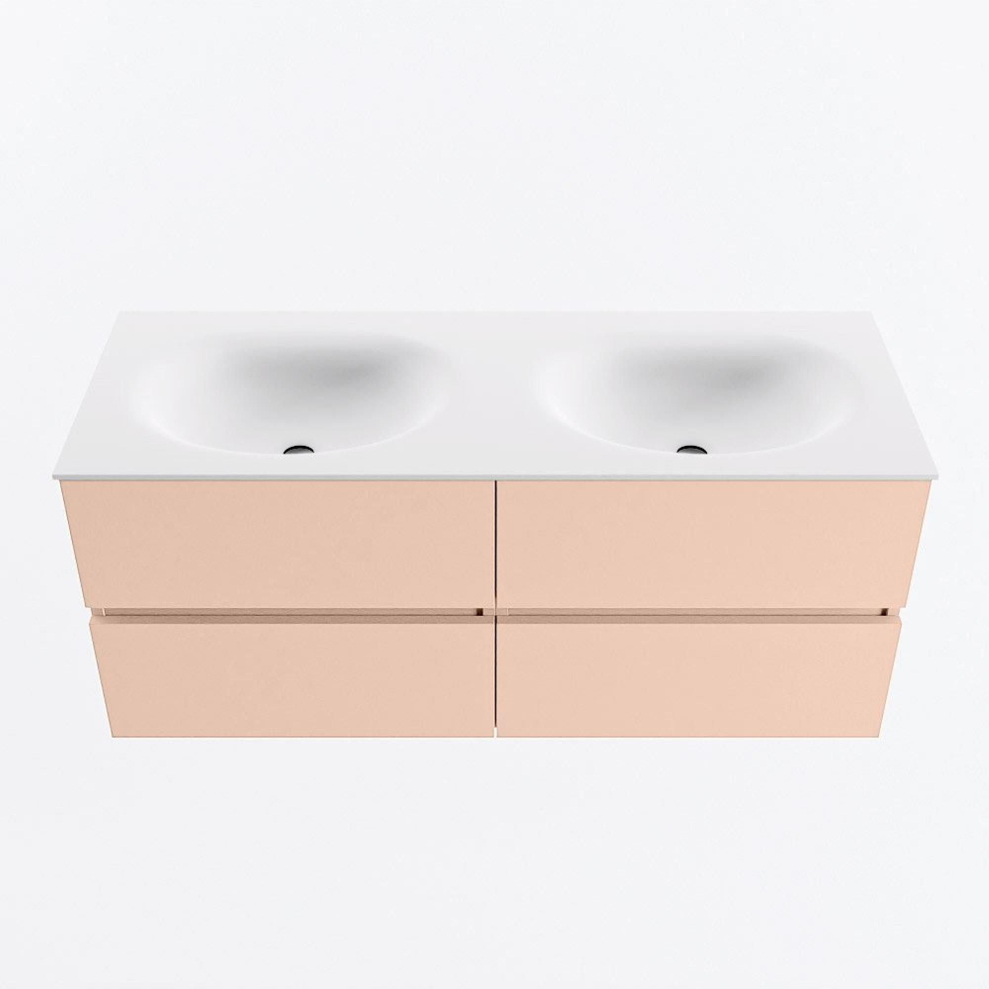 MONDIAZ VICA Ensemble meuble de salle de bains - 120cm - meuble bas rosee - 4 tiroirs - plan-vasque moon double - sans trous de robinet - version haute 60cm - talc