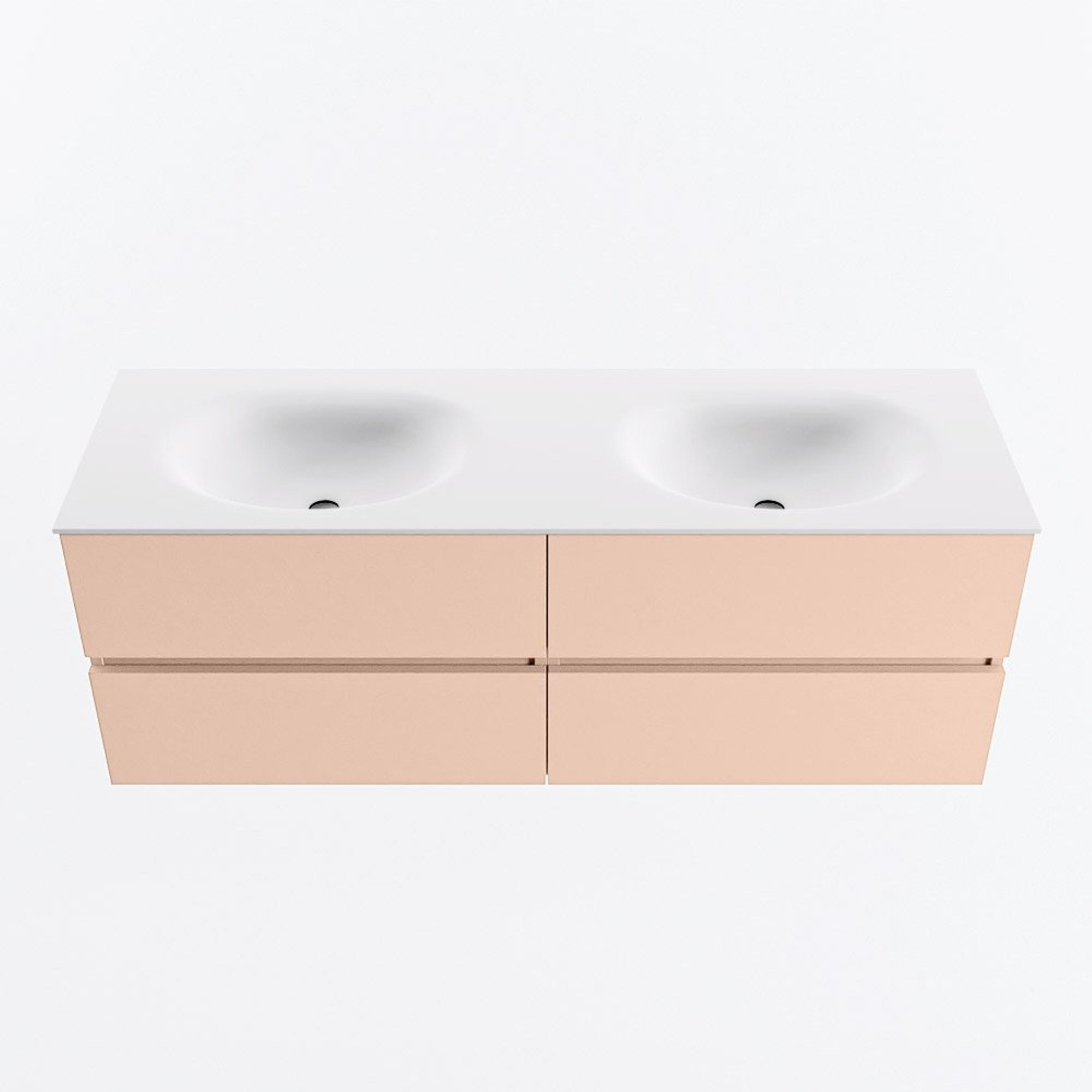 MONDIAZ VICA Ensemble meuble de salle de bains - 140cm - meuble bas rosee - 4 tiroirs - lavabo moon double - 2 trous de robinet - version haute 60cm - talc