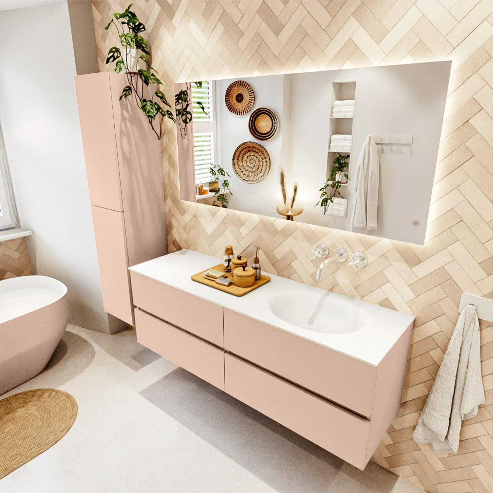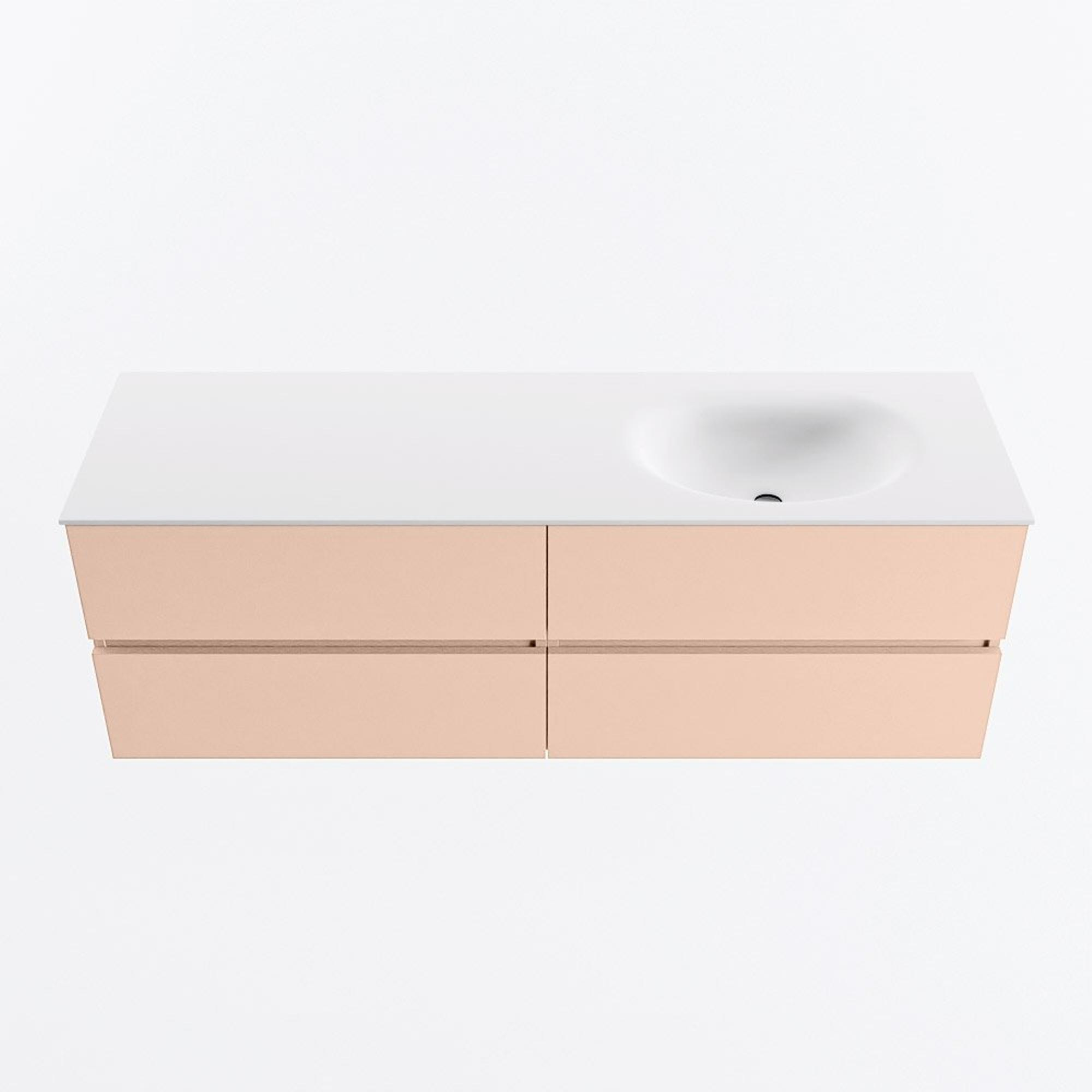 MONDIAZ VICA Ensemble meuble de salle de bains - 150cm - meuble bas rosee - 4 tiroirs - lavabo moon à droite - sans trous de robinet - version hauteur 60cm - talc