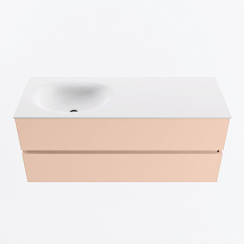 MONDIAZ VICA Ensemble de meubles de salle de bains - 120cm - meuble bas rosee- 2 tiroirs - lavabo moon gauche - 1 trou de robinet - version haute 60cm - talc