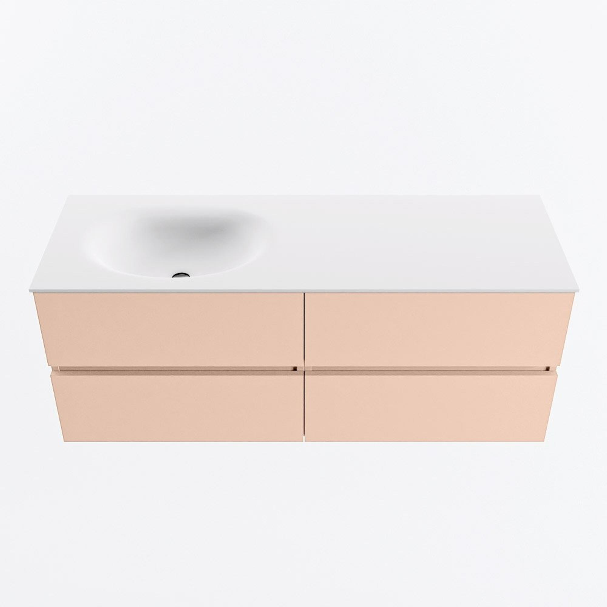 MONDIAZ VICA Ensemble meuble de salle de bains - 130cm - meuble bas rosee - 4 tiroirs - lavabo moon gauche - 1 trou de robinet - version haute 60cm - talc