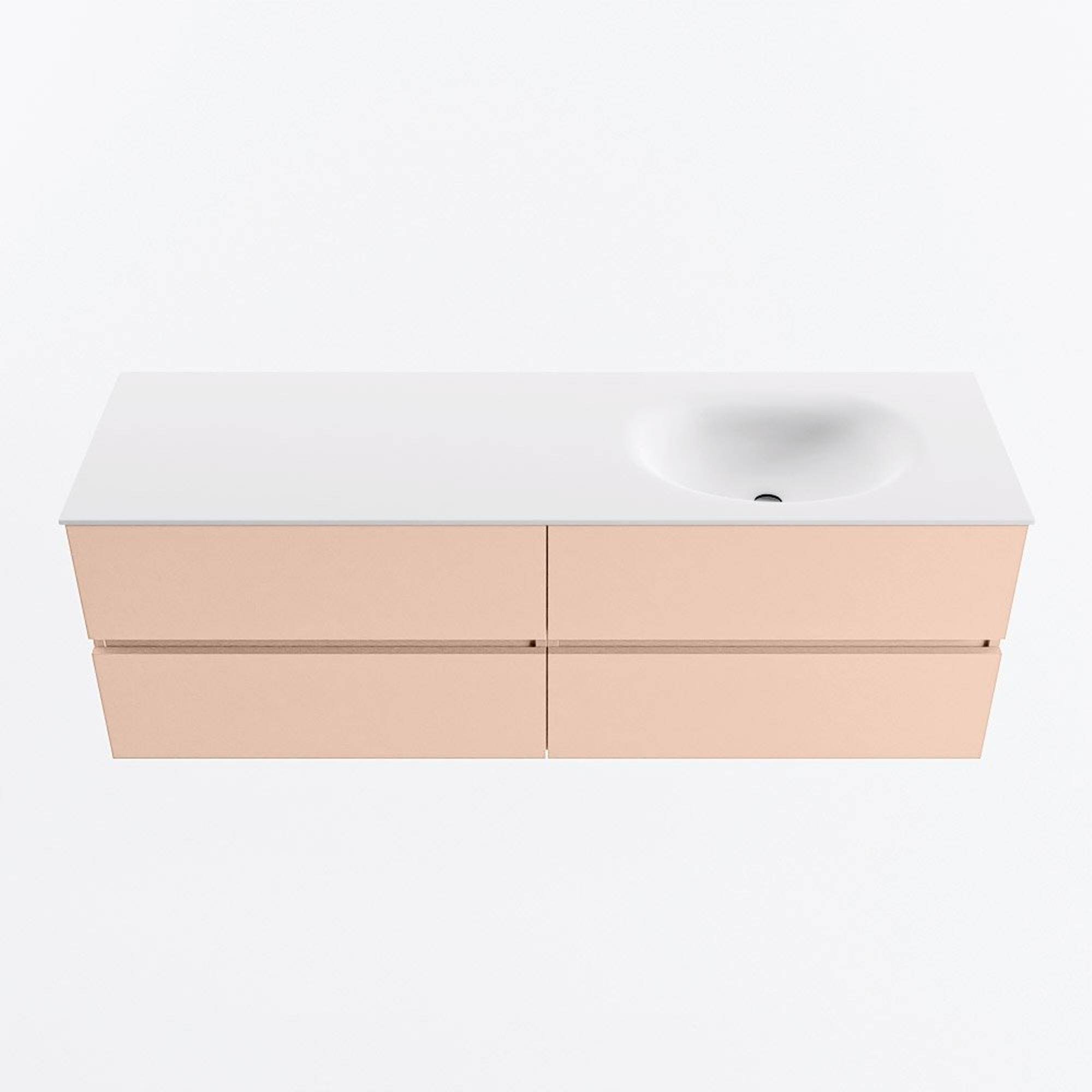MONDIAZ VICA Ensemble meuble de salle de bains - 150cm - meuble sous-vasque rosee - 4 tiroirs - lavabo moon à droite - 1 trou de robinet - version haute 60cm - talc