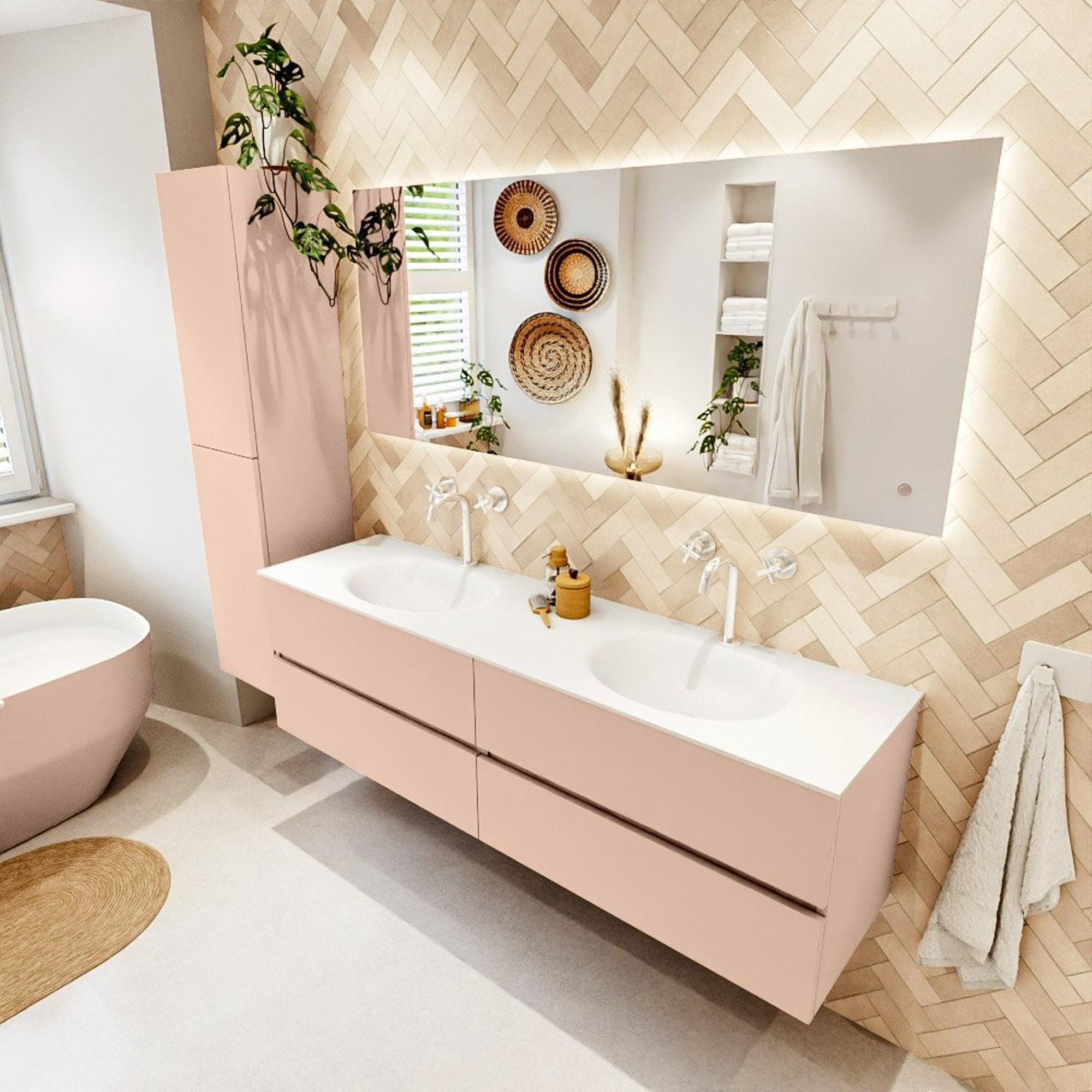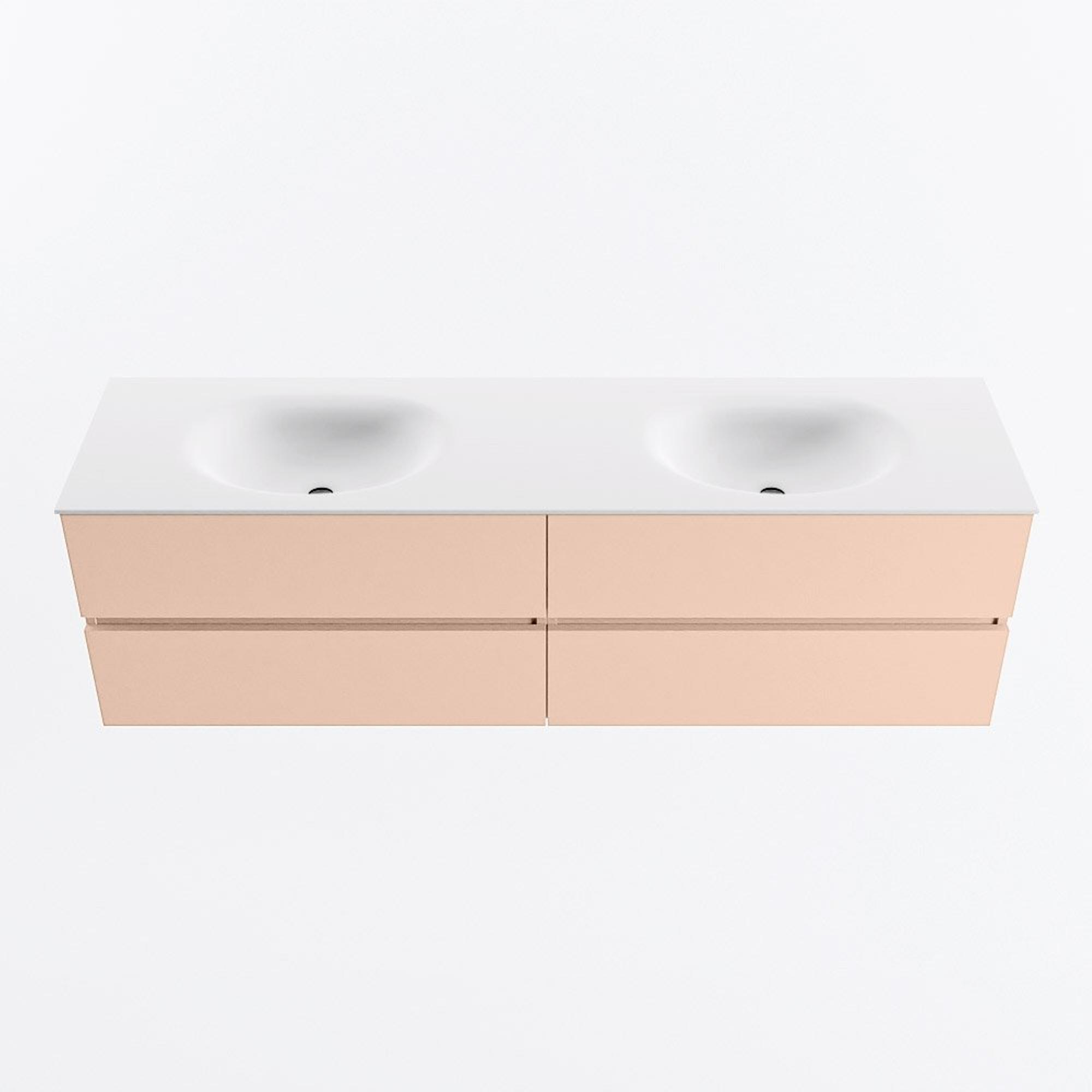 MONDIAZ Vica Ensemble meuble de salle de bains - 170cm - meuble bas rosee - 4 tiroirs - vasque moon double - 2 trous de robinet - version haute 60cm - talc