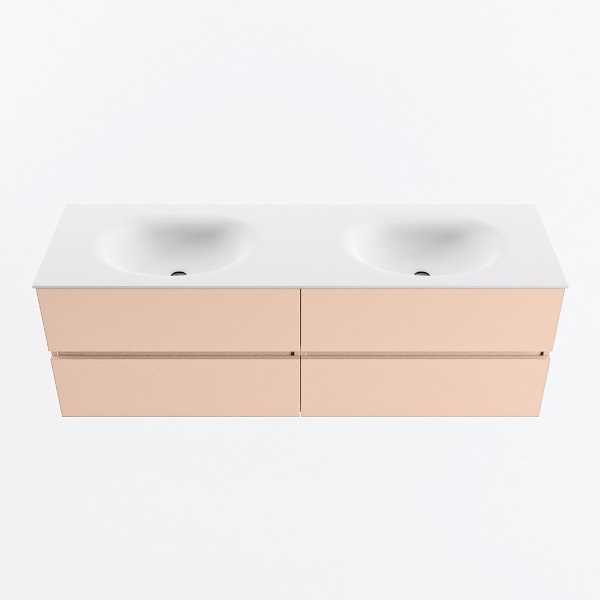 MONDIAZ VICA Ensemble meuble de salle de bains - 150cm - meuble bas rosee - 4 tiroirs - lavabo moon double - 2 trous de robinet - version haute 60cm - talc