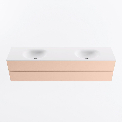 MONDIAZ VICA Ensemble meuble de salle de bains - 200cm - meuble bas rosee - 4 tiroirs - lavabo moon double - 2 trous de robinet - version haute 60cm - talc
