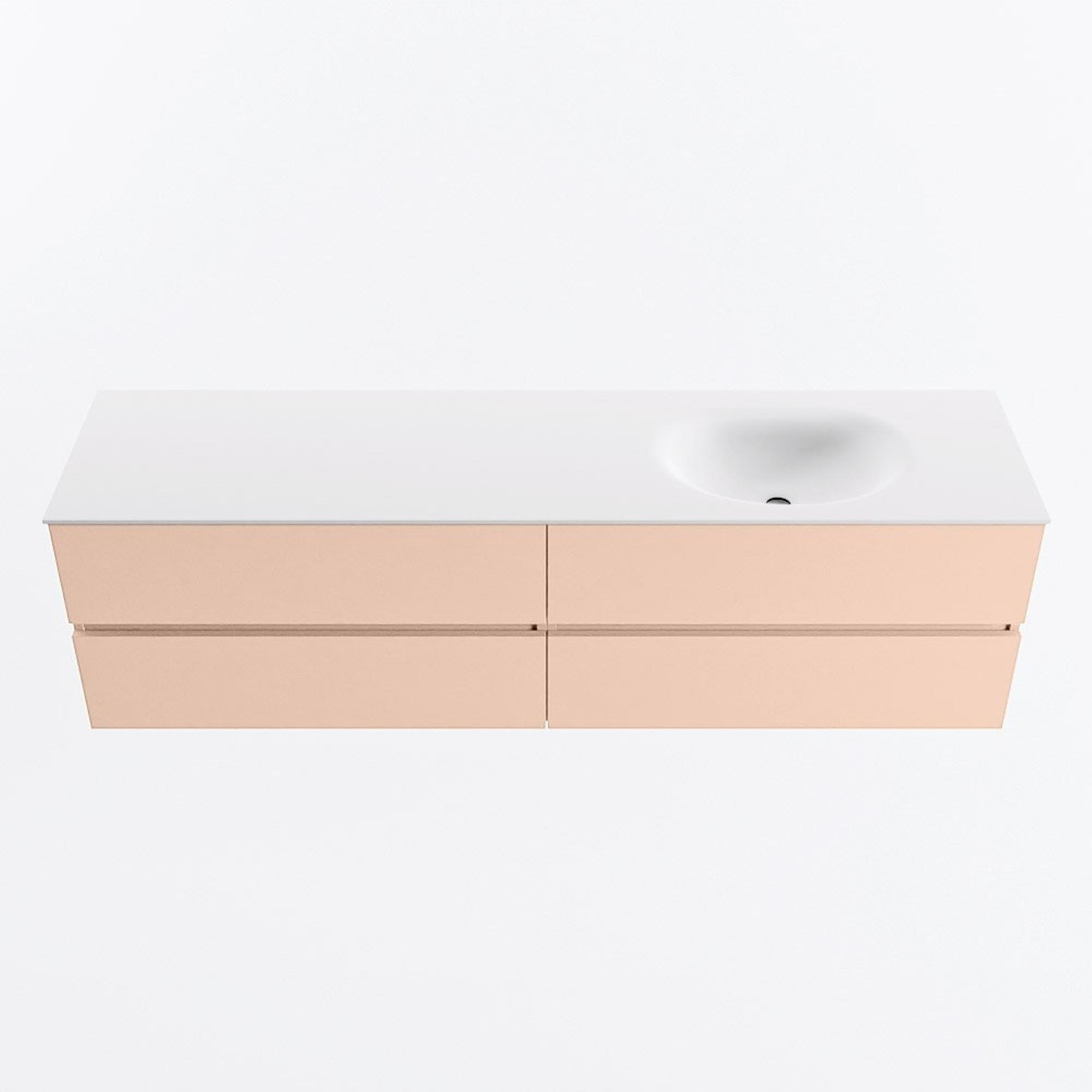 MONDIAZ Vica Ensemble de meuble de salle de bains - 180cm - meuble bas rosee - 4 tiroirs - lavabo moon à droite - sans trous de robinet - version haute 60cm - talc