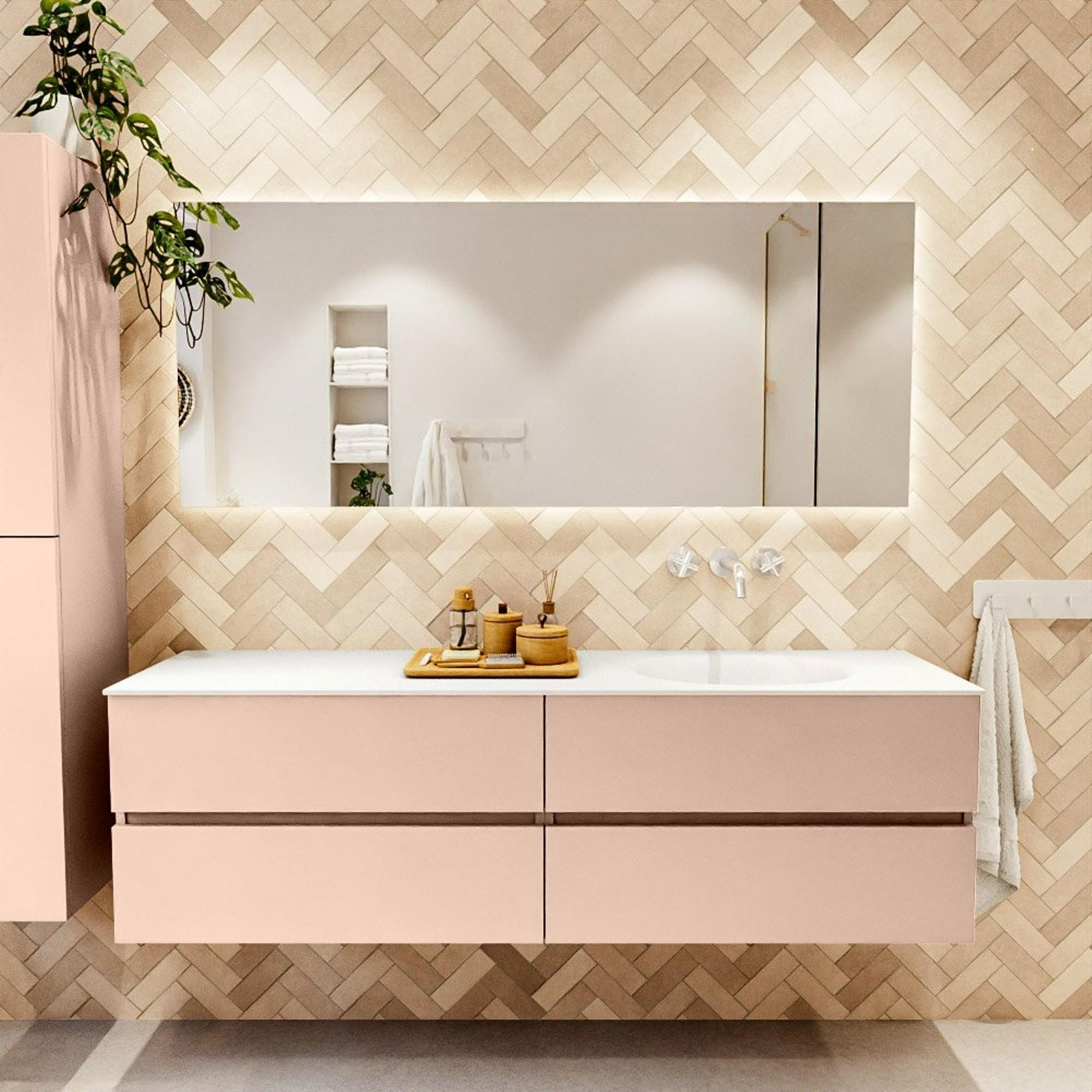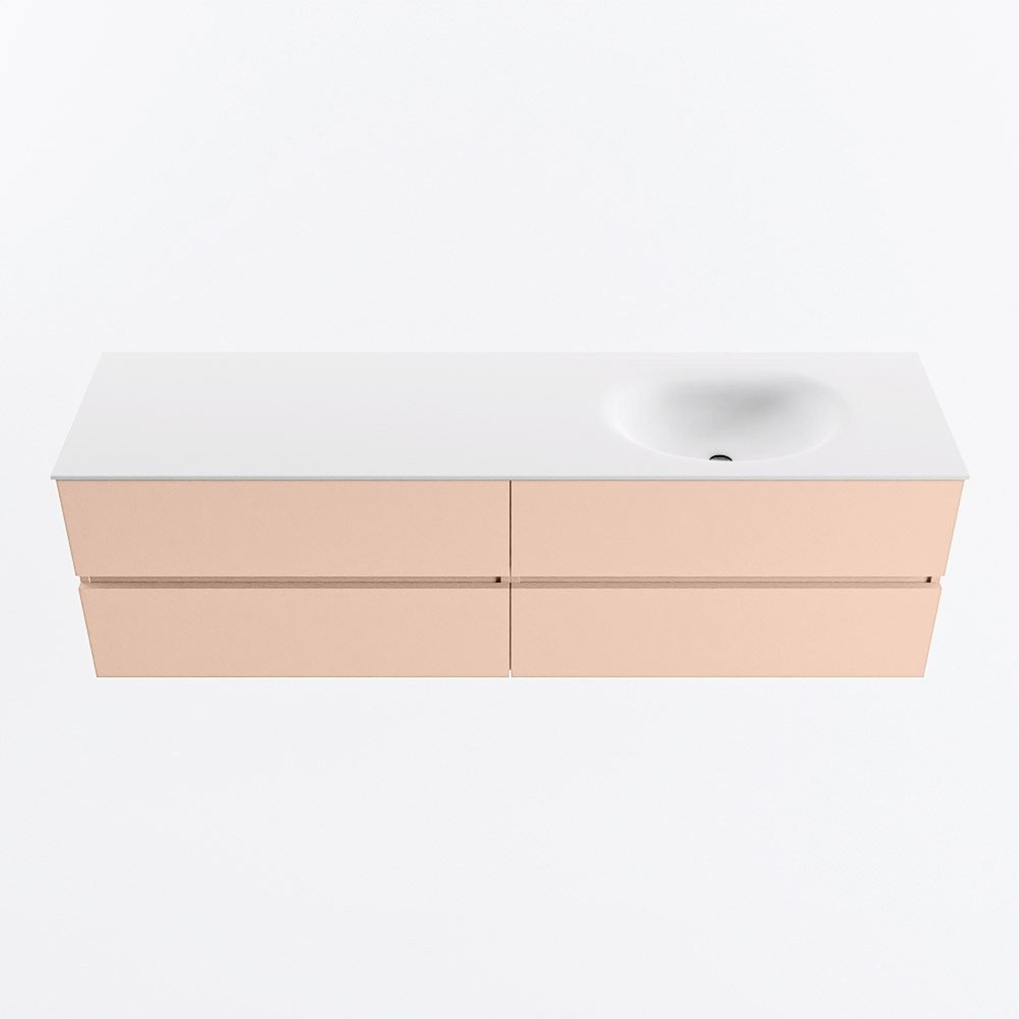 MONDIAZ Vica Ensemble meuble de salle de bains - 170cm - meuble bas rosee - 4 tiroirs - lavabo moon à droite - sans trous de robinet - version haute 60cm - talc