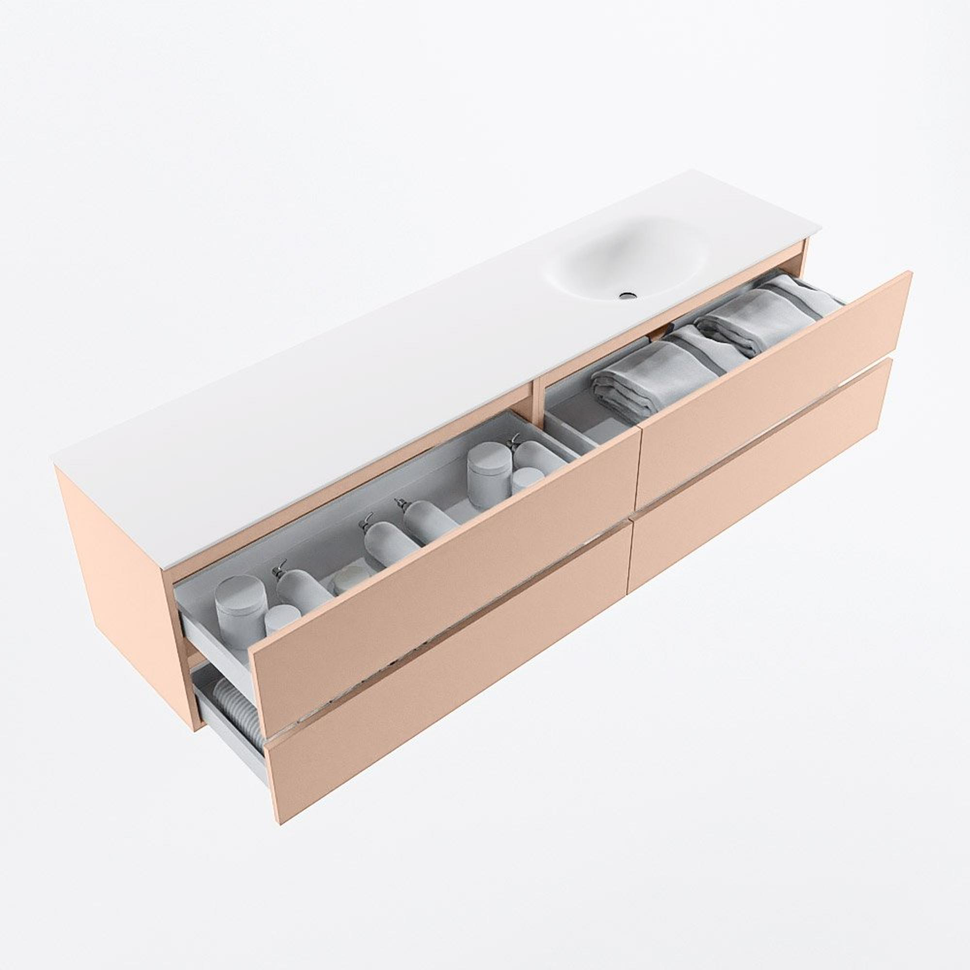 Mondiaz VICA ensemble de meuble de salle de bain - 200cm - meuble sous-vasque rosee - 4 tiroirs - lavabo moon droite - 1 trou de robinet - version haute de 60cm - talc