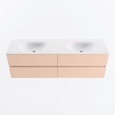 Mondiaz Vica ensemble de meuble de salle de bain - 160cm - meuble sous lavabo rosee - 4 tiroirs - lavabo moon double - sans trous de robinet - version haute de 60cm - talc