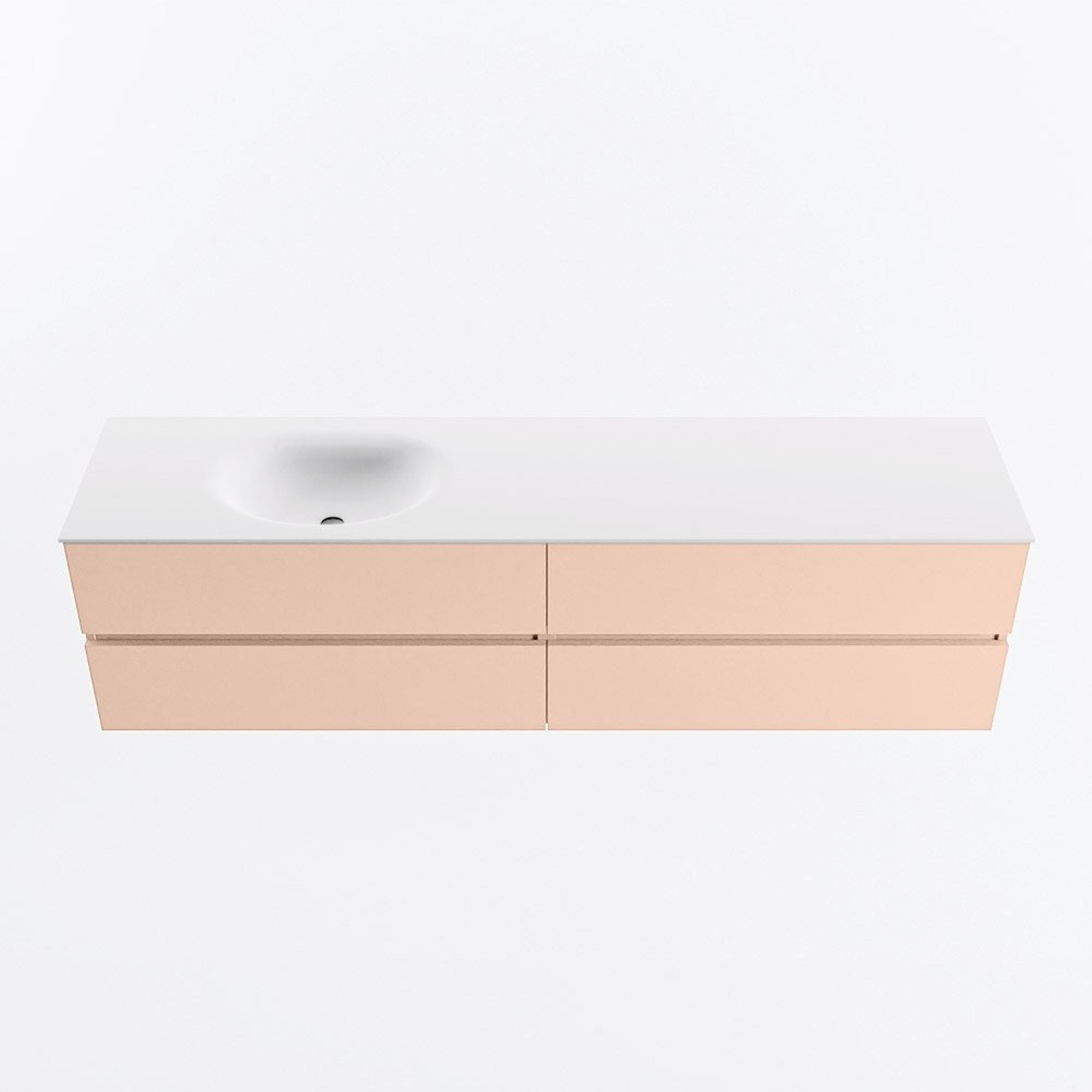 MONDIAZ Vica Ensemble meuble de salle de bains - 190cm - meuble bas rosee - 4 tiroirs - lavabo moon gauche - 1 trou de robinet - version hauteur 60cm - talc