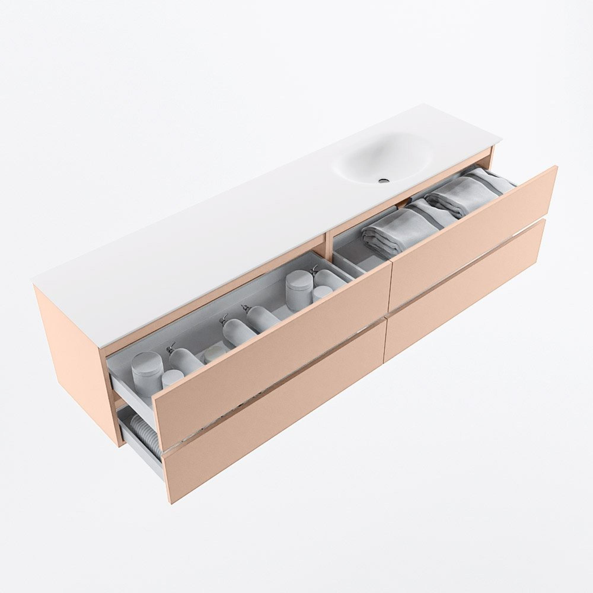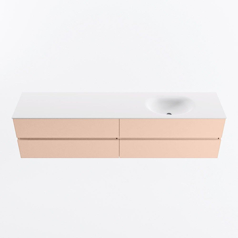 MONDIAZ VICA Ensemble meuble de salle de bains - 200cm - meuble sous-vasque rosee - 4 tiroirs - lavabo moon à droite - sans trous de robinet - version haute 60cm - talc