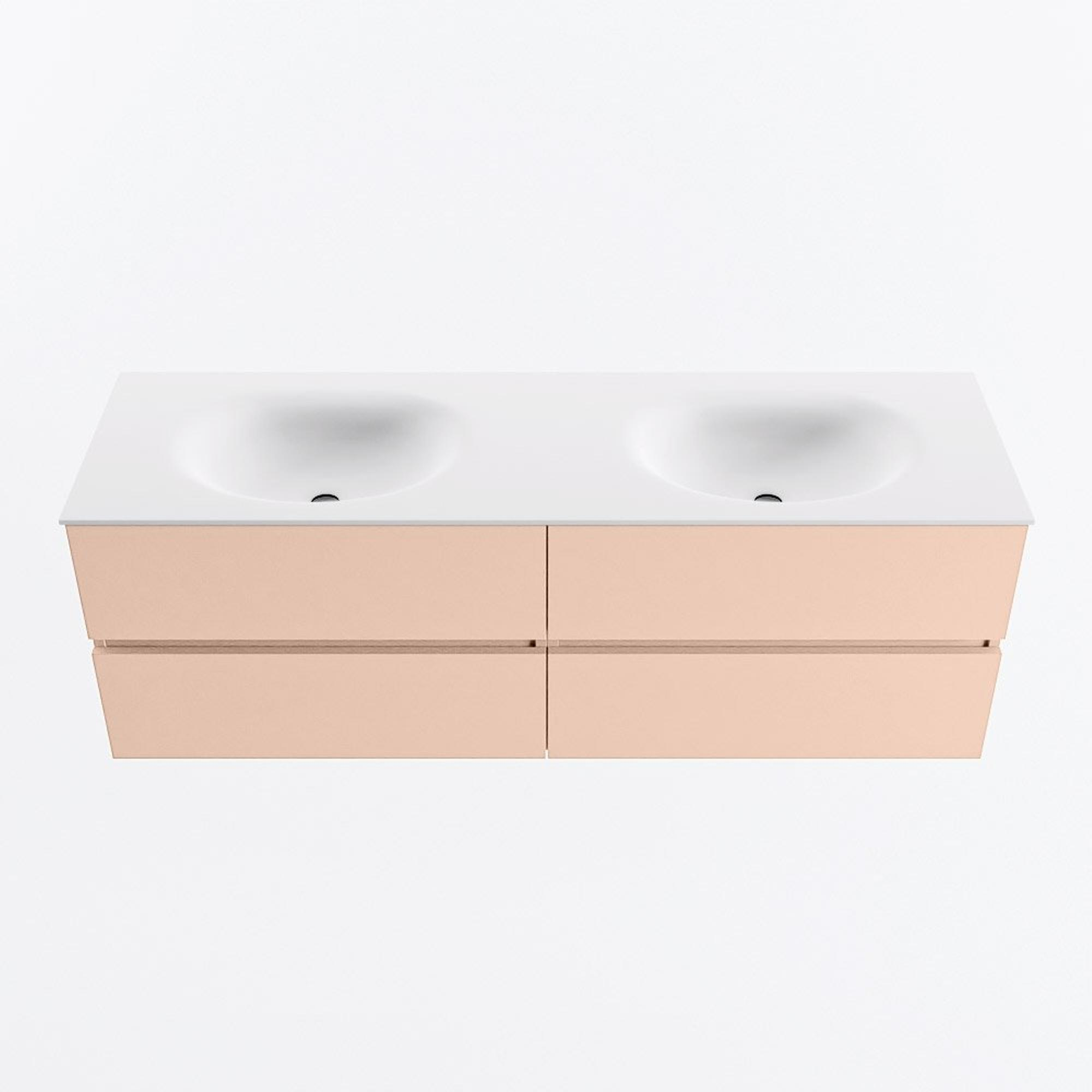 Mondiaz VICA ensemble de meuble de salle de bain - 150cm - meuble sous-vasque rosee - 4 tiroirs - lavabo moon double - sans trous de robinet - version haute de 60cm - talc