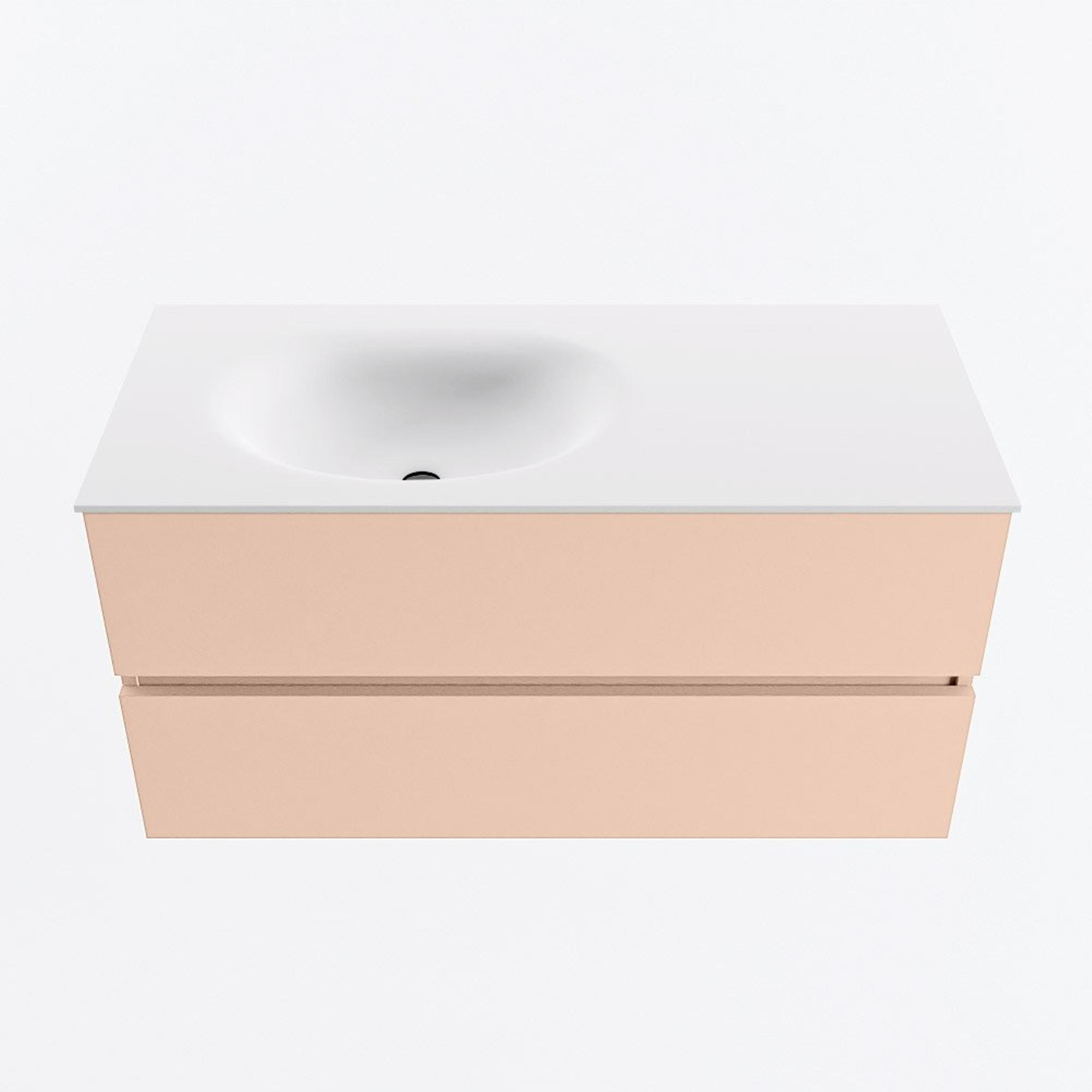MONDIAZ VICA Ensemble meuble de salle de bains - 100cm - meuble bas rosee - 2 tiroirs - lavabo moon gauche - 1 trou de robinet - version haute 60cm - talc
