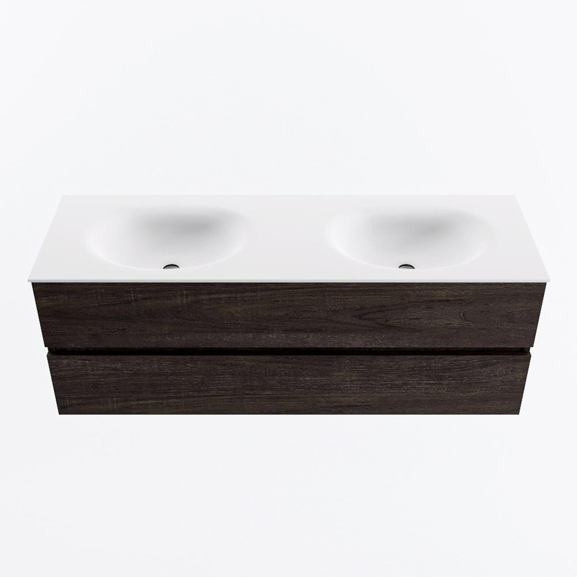 MONDIAZ VICA Ensemble meuble de salle de bains - 140cm - meuble bas dark brown - 2 tiroirs - lavabo moon double - 2 trous de robinet - version haute 60cm - talc