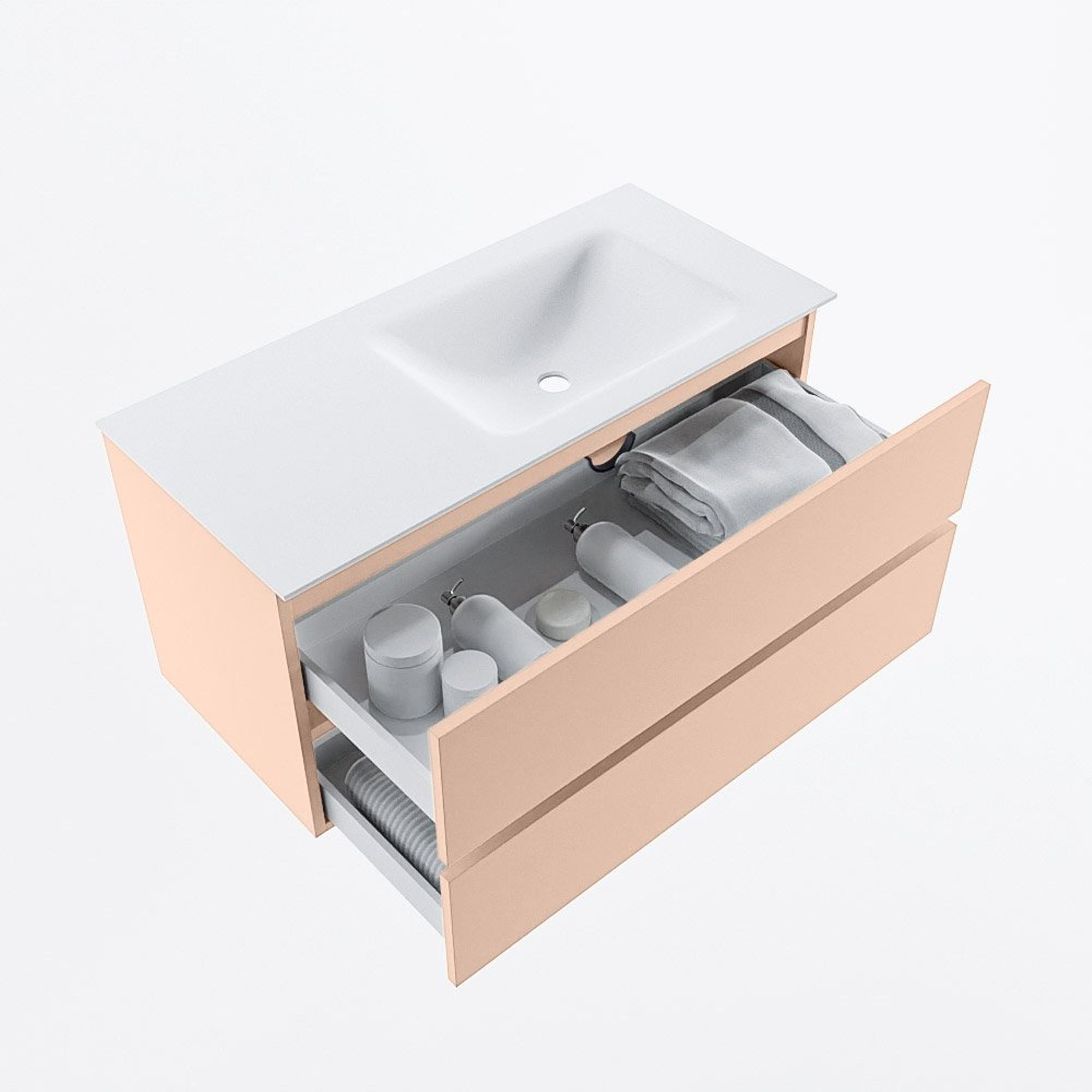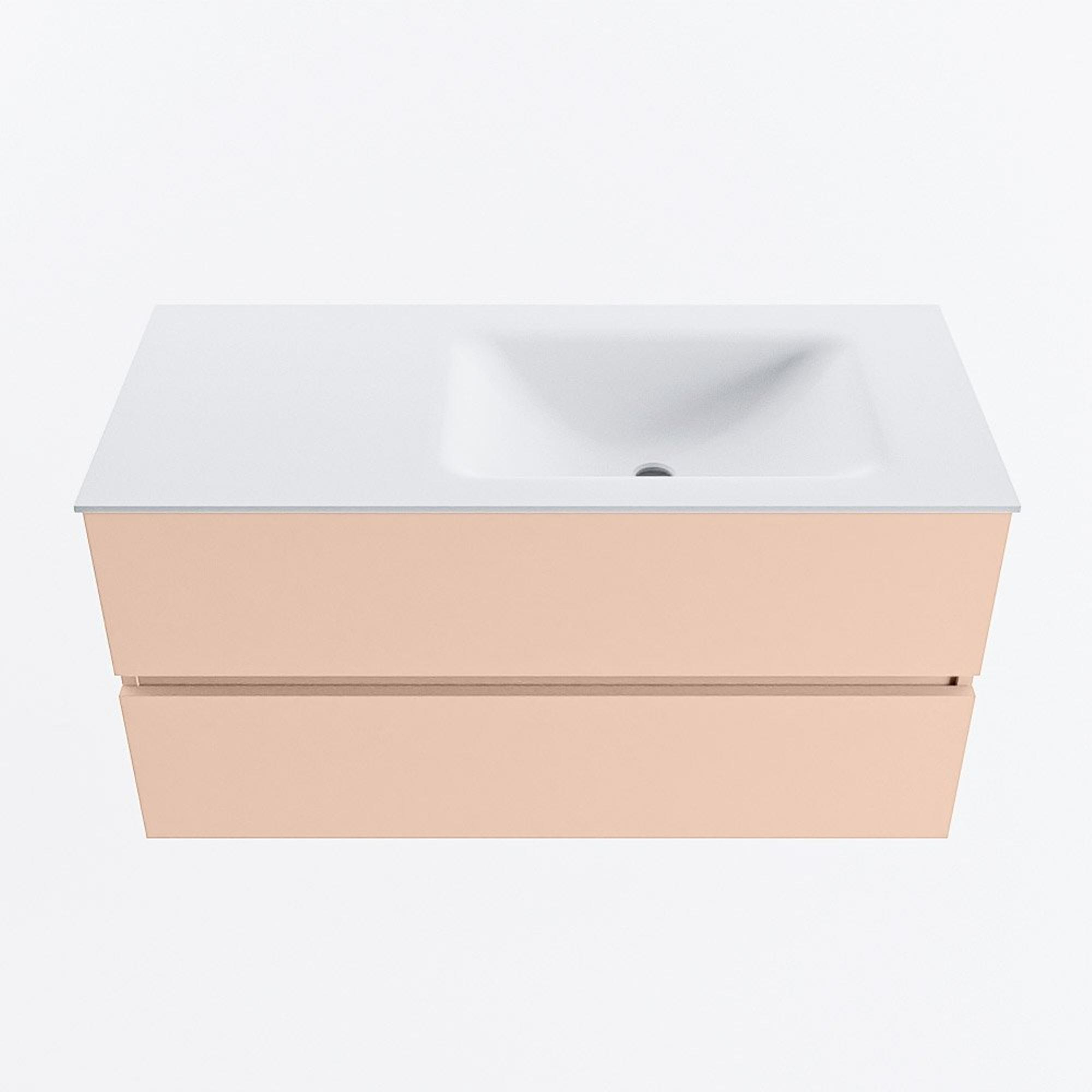 MONDIAZ VICA Ensemble meuble de salle de bains - 100cm - sous-meuble rosee - 2 tiroirs - lavabo cloud à droite - sans trous de robinet - version haute 60cm - talc