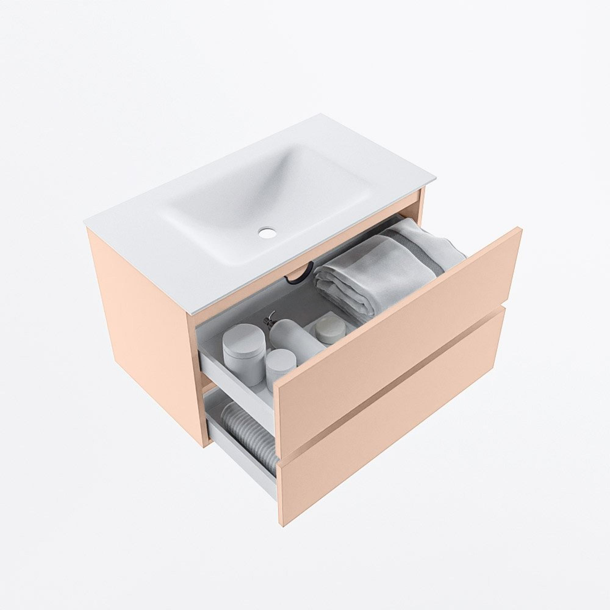 MONDIAZ VICA Ensemble meuble de salle de bains - 80cm - sous-meuble rosee - 2 tiroirs - lavabo cloud central - 1 trou de robinet - version haute 60cm - talc