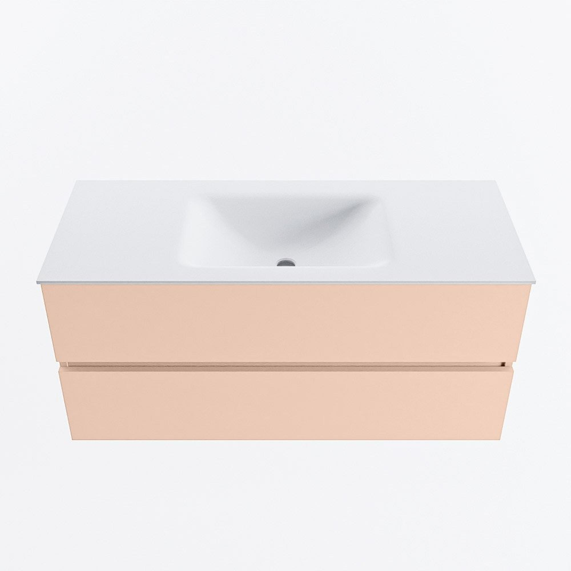 MONDIAZ VICA Ensemble meuble de salle de bains - 110cm - sous-meuble rosee - 2 tiroirs - lavabo cloud central - sans trous de robinet - version haute 60cm - talc