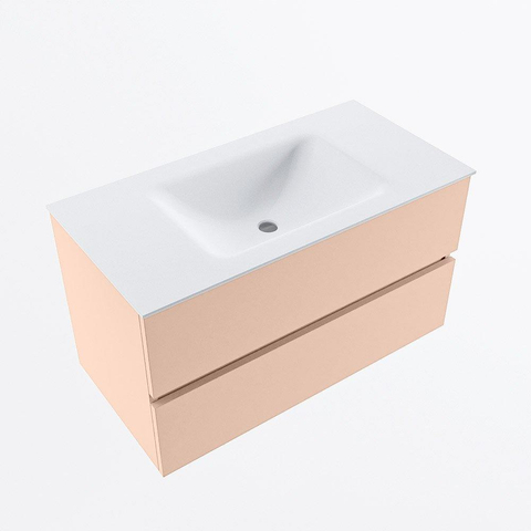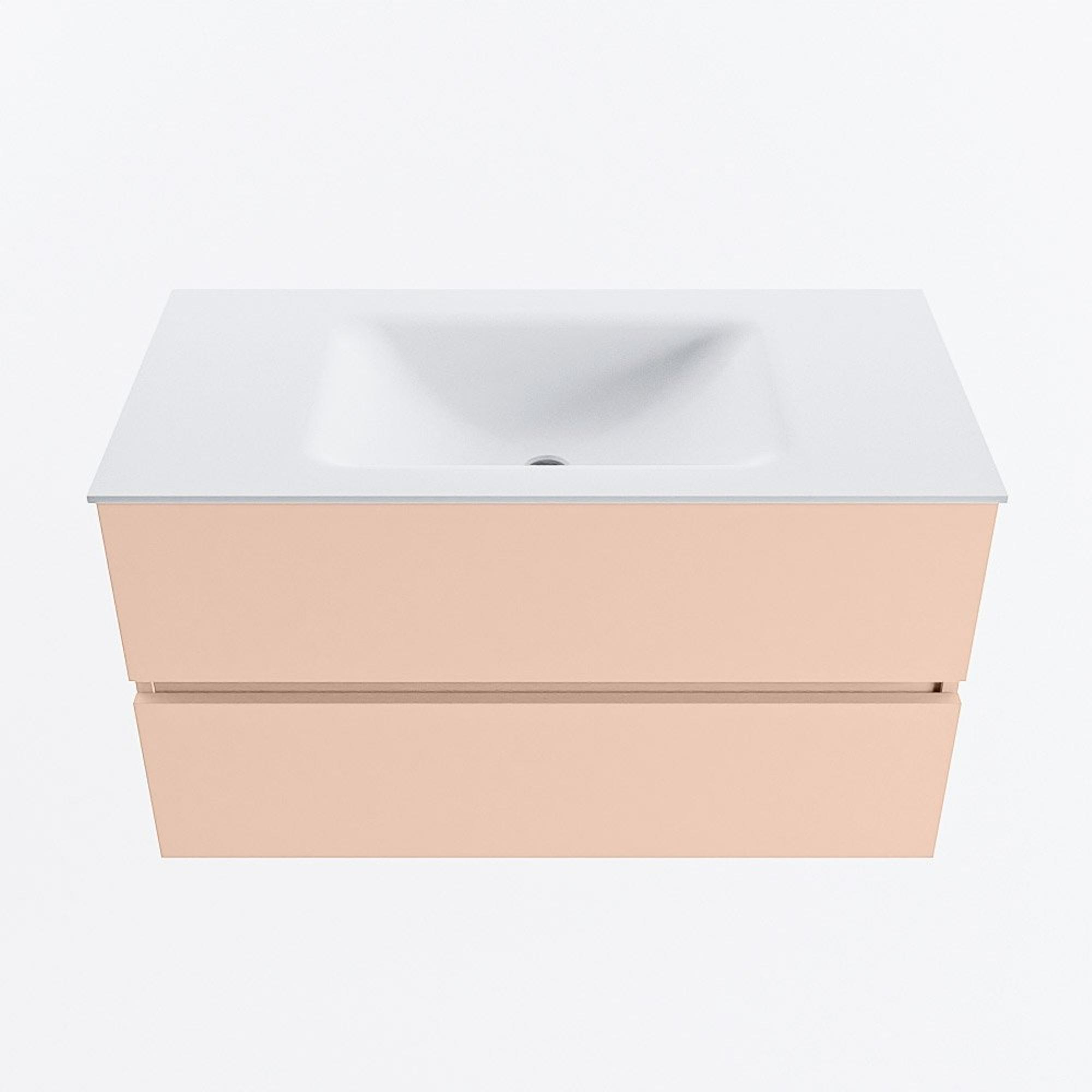 MONDIAZ VICA Ensemble meuble de salle de bains - 90cm - meuble bas rosee - 2 tiroirs - vasque cloud centrée - 1 trou de robinet - version haute 60cm - talc