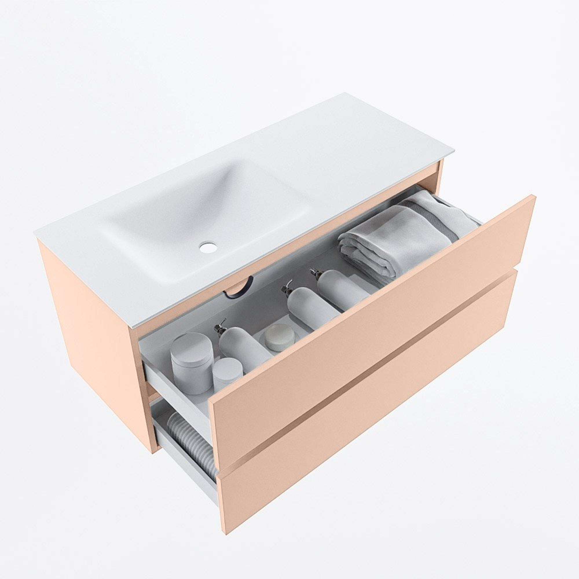 MONDIAZ VICA Ensemble meuble de salle de bains - 110cm - meuble sous-vasque rosee - 2 tiroirs - lavabo cloud gauche - sans trous de robinet - version haute 60cm - talc