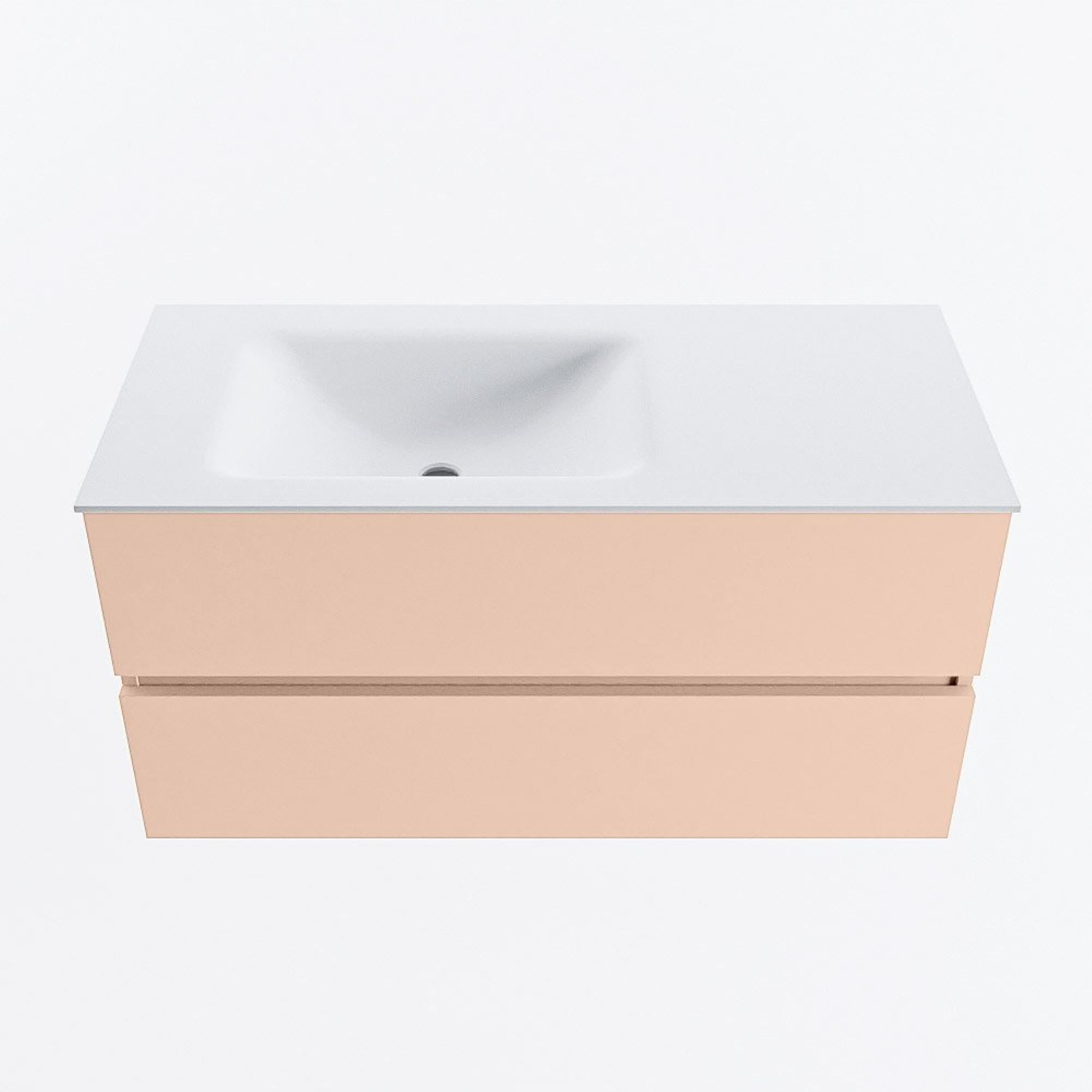 MONDIAZ VICA Ensemble meuble de salle de bains - 100cm - meuble bas rosee - 2 tiroirs - lavabo cloud gauche - 1 trou de robinet - version haute 60cm - talc