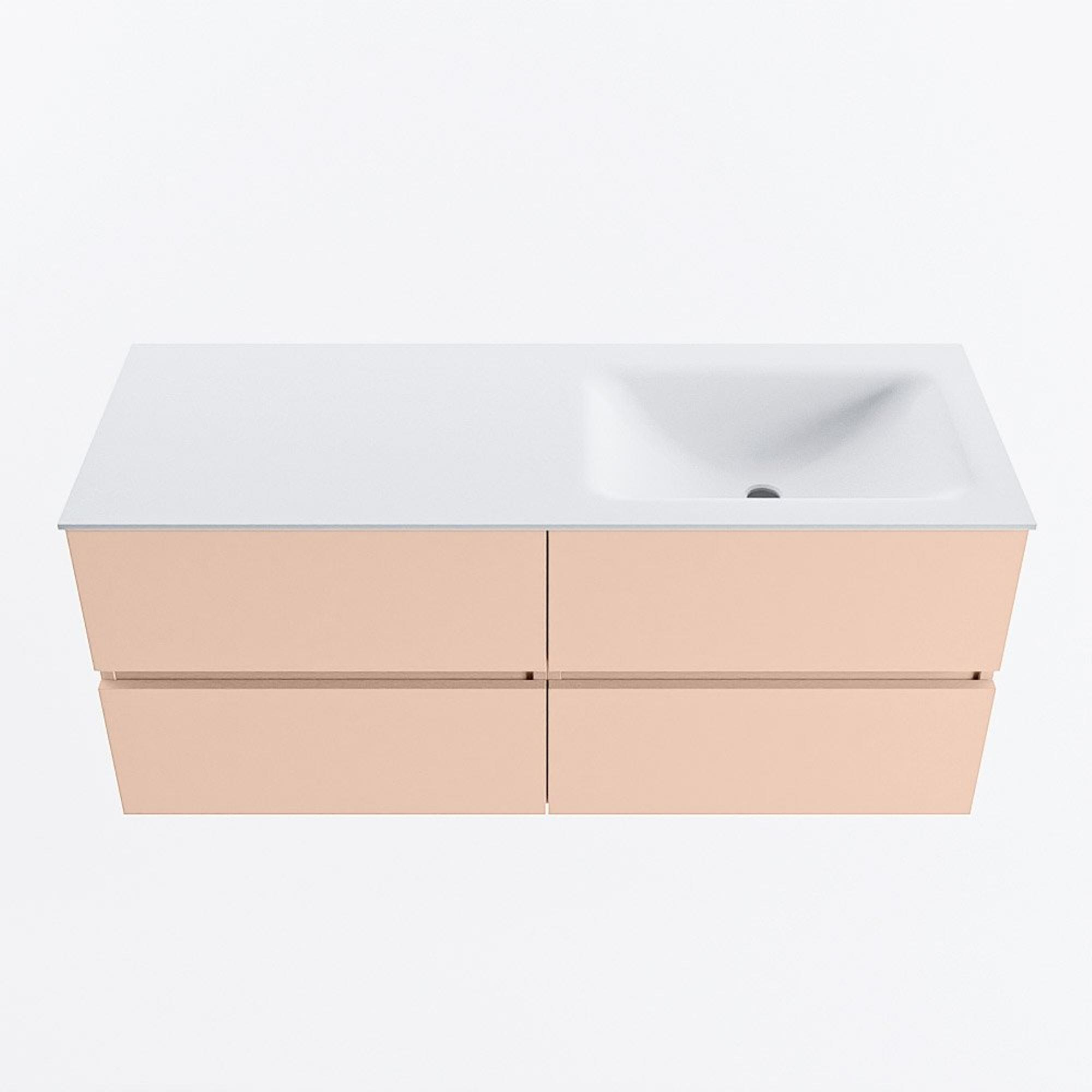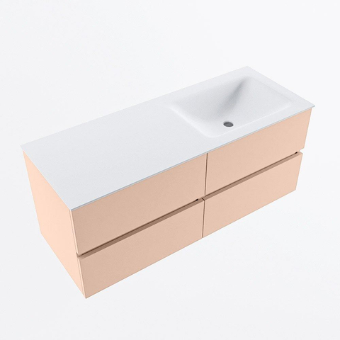 MONDIAZ VICA Ensemble meuble de salle de bains - 120cm - meuble bas rosee - 4 tiroirs - lavabo cloud à droite - sans trous de robinet - version haute 60cm - talc