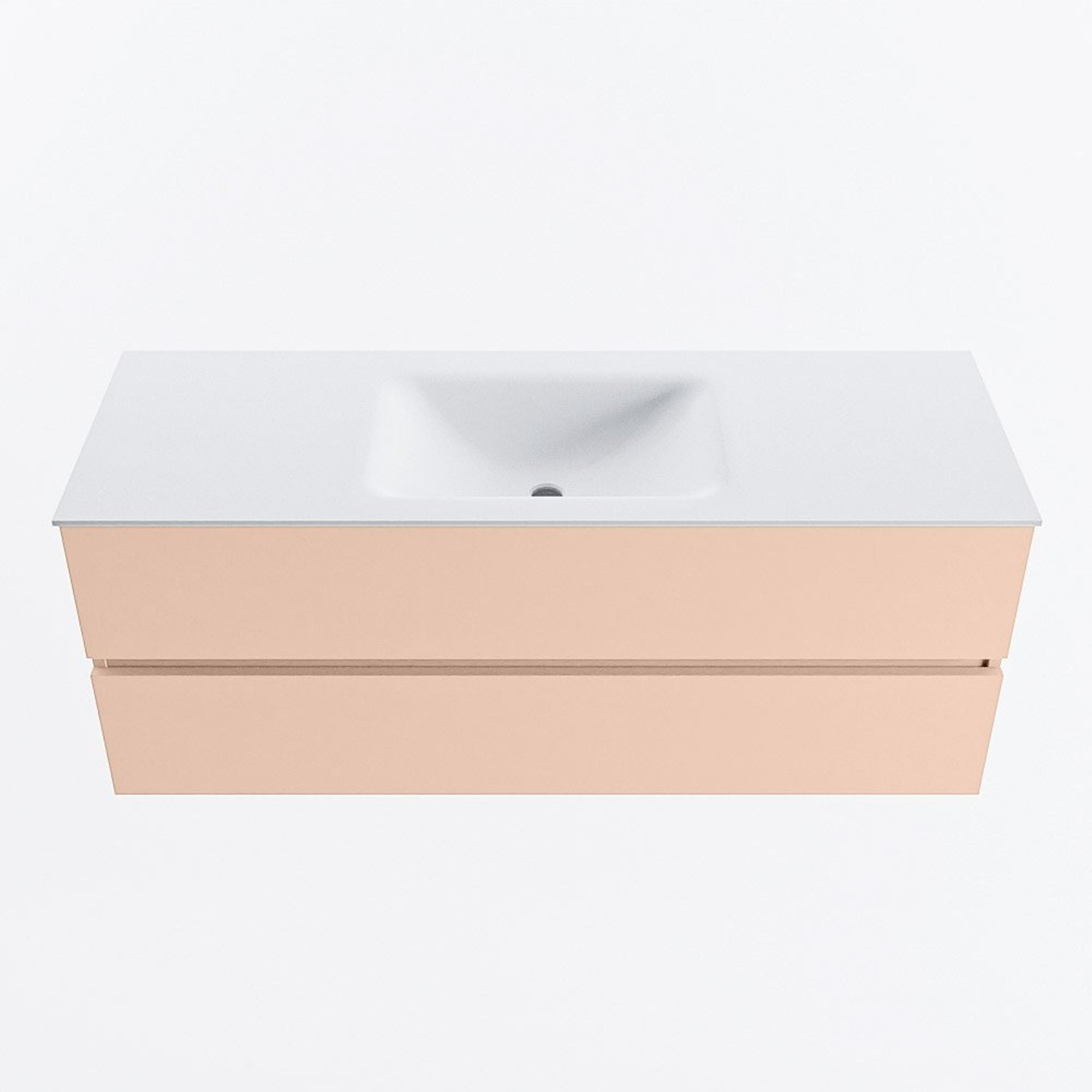 Mondiaz VICA Ensemble de meuble de salle de bain - 130cm - meuble sous vasque rosee - 2 tiroirs - lavabo cloud milieu - sans trous de robinet - version haute de 60cm - talc