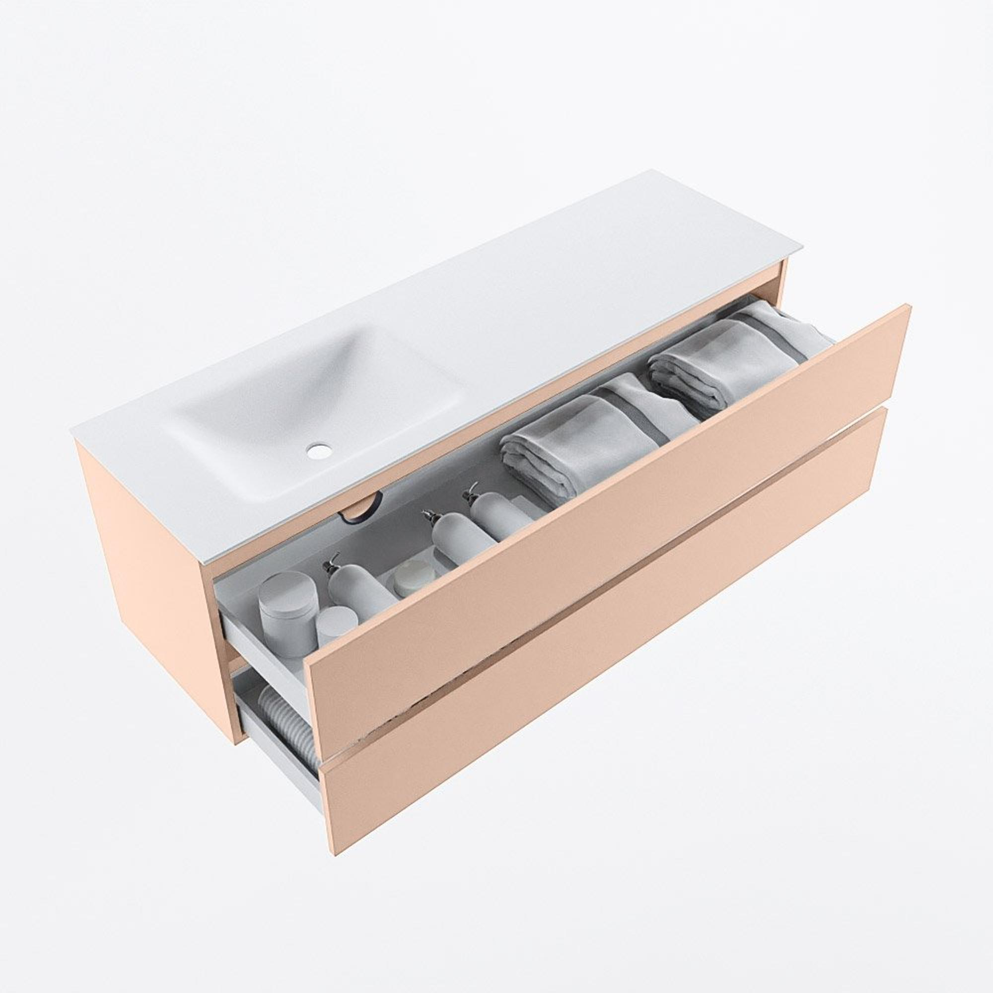 MONDIAZ VICA Ensemble meuble de salle de bains - 150cm - meuble bas rosee - 2 tiroirs - lavabo cloud gauche - sans trous de robinet - version haute 60cm - talc