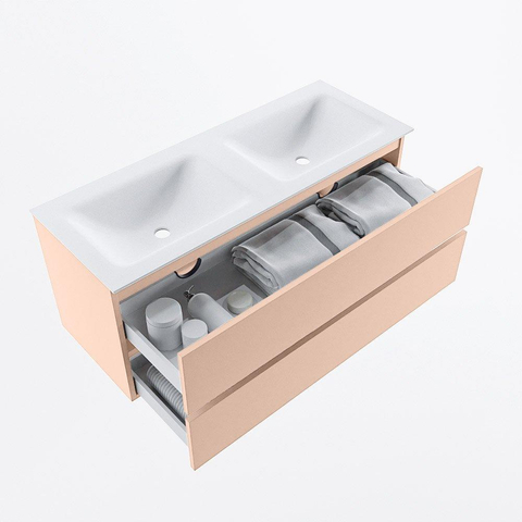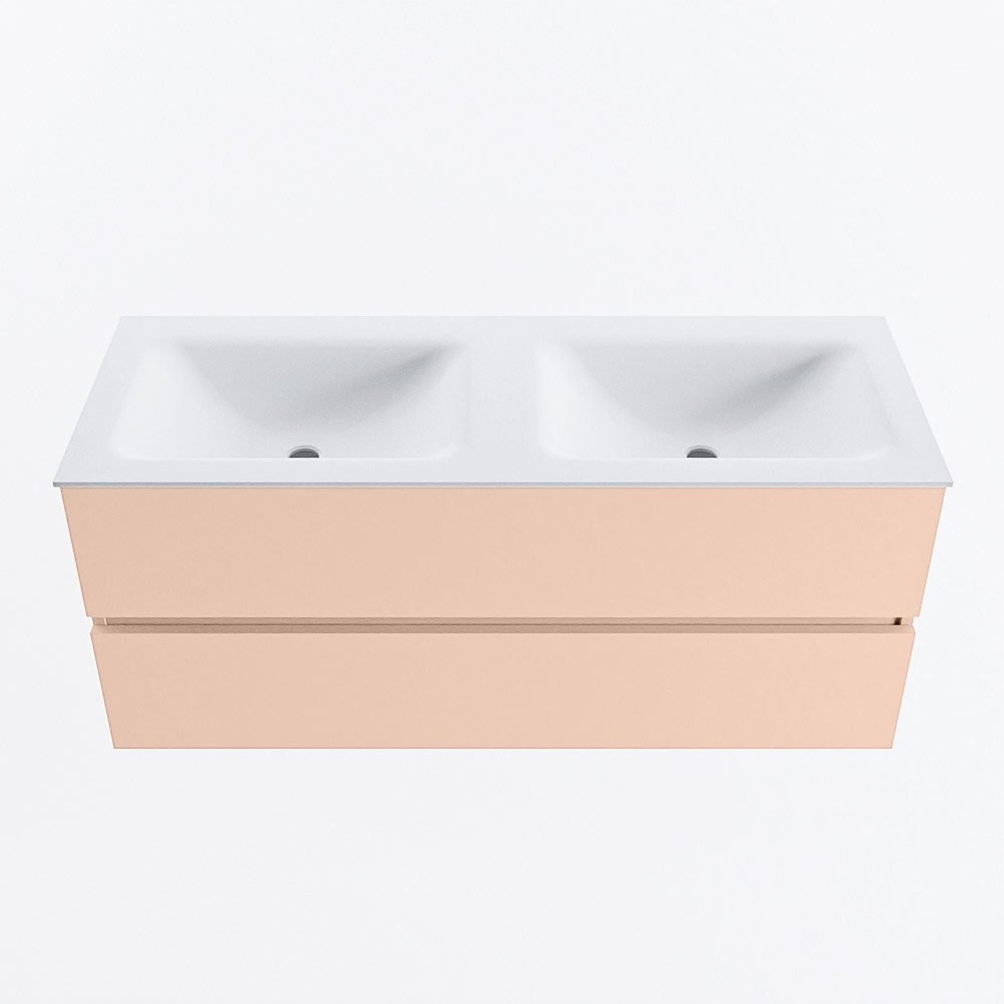 MONDIAZ VICA Ensemble meuble de salle de bains - 120cm - meuble bas rosee - 2 tiroirs - lavabo double cloud - 2 trous de robinet - version haute 60cm - talc