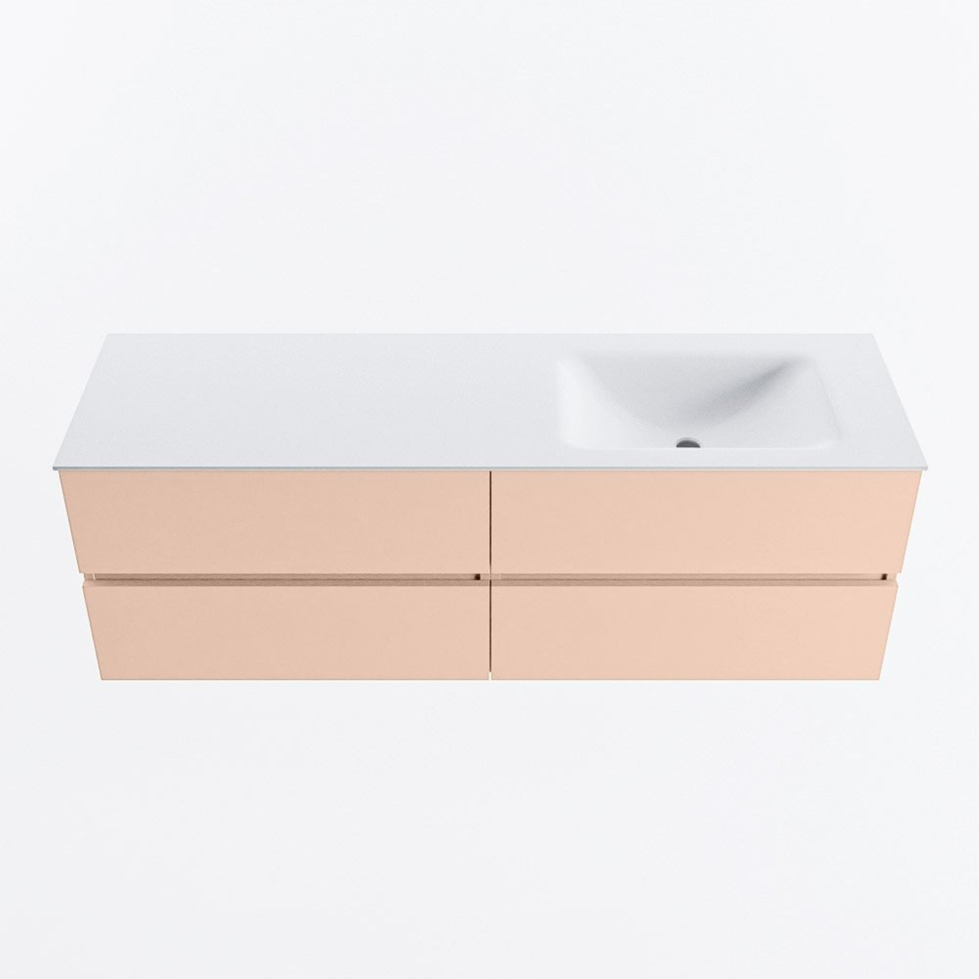 MONDIAZ VICA Ensemble de meuble de salle de bains - 150cm - meuble bas rosee - 4 tiroirs - lavabo cloud à droite - sans trous de robinet - version haute 60cm - talc