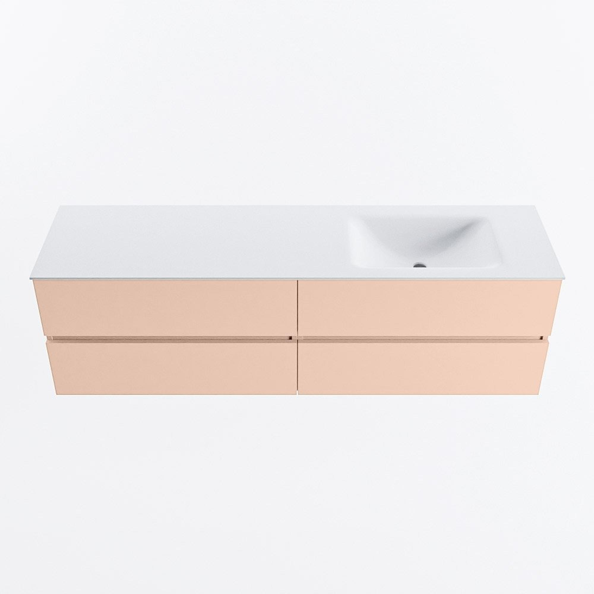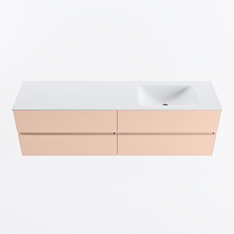 MONDIAZ Vica Ensemble de meubles de salle de bains - 170cm - meuble bas rosee - 4 tiroirs - lavabo cloud à droite - 1 trou de robinet - version haute 60cm - talc