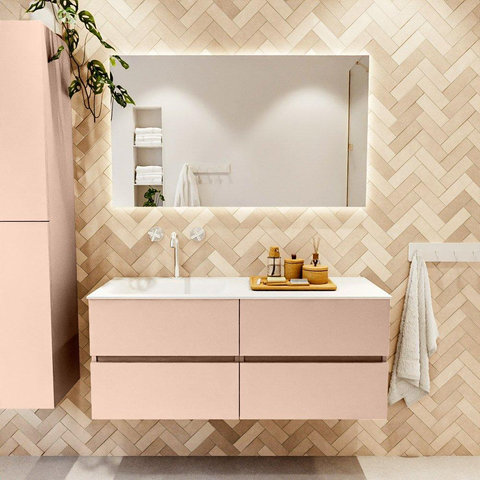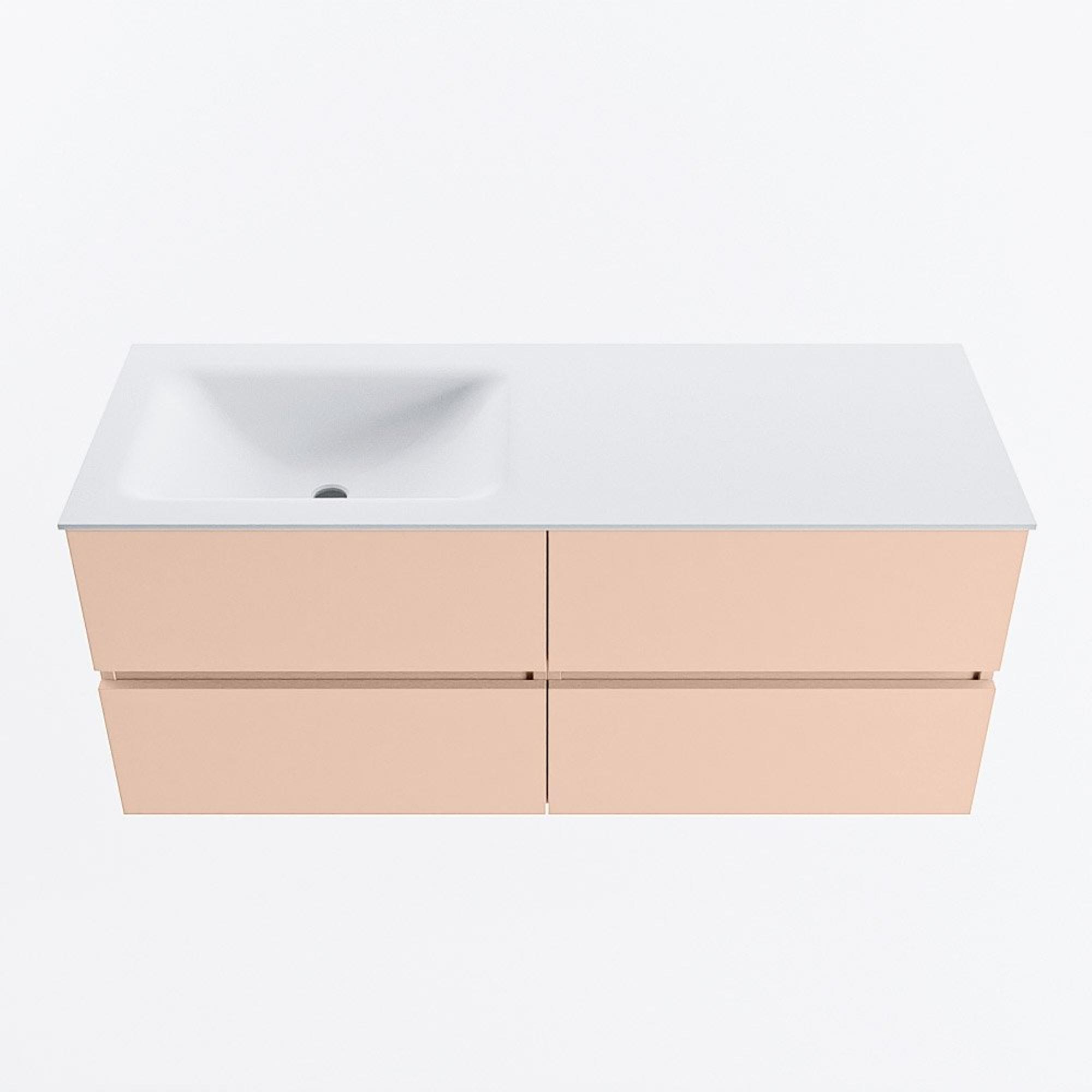 MONDIAZ VICA Ensemble meuble de salle de bains - 120cm - meuble bas rosee - 4 tiroirs - lavabo cloud gauche - 1 trou de robinet - version haute 60cm - talc