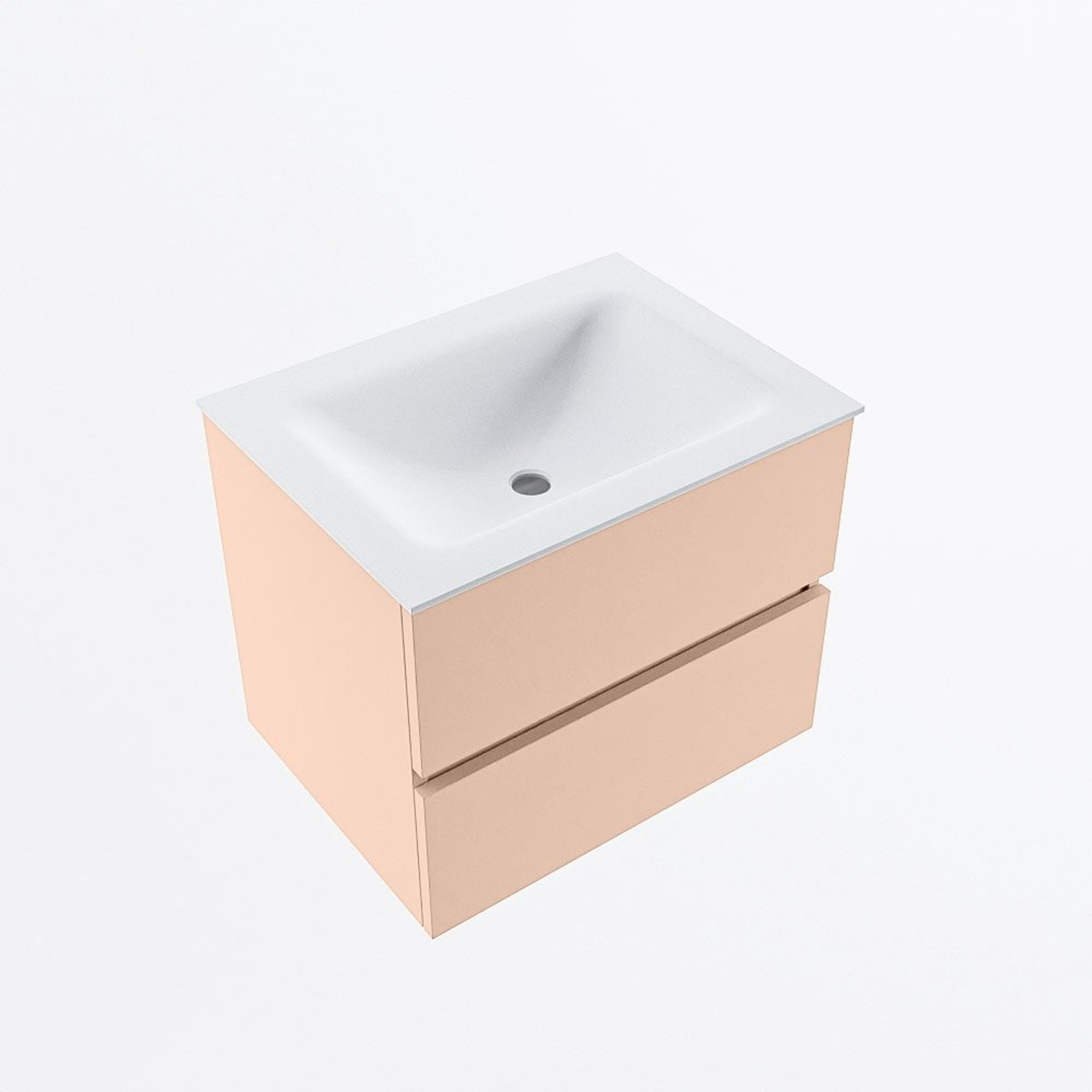 MONDIAZ VICA Ensemble meuble de salle de bains - 60cm - meuble sous-vasque rosee - 2 tiroirs - lavabo cloud au centre - sans trous de robinet - version haute 60cm - talc