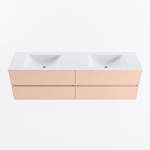 MONDIAZ Vica Ensemble meuble de salle de bains - 170cm - meuble bas rosee - 4 tiroirs - lavabo cloud double - sans trous de robinet - version haute 60cm - talc