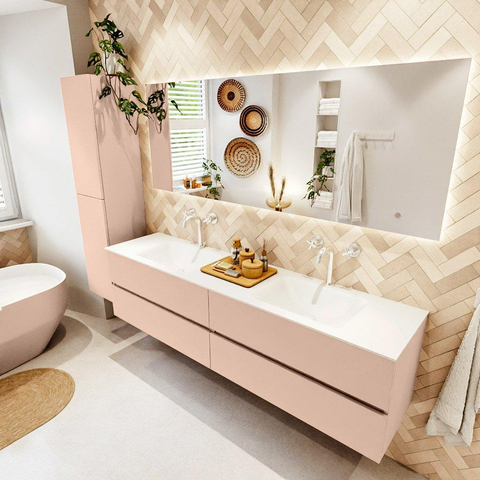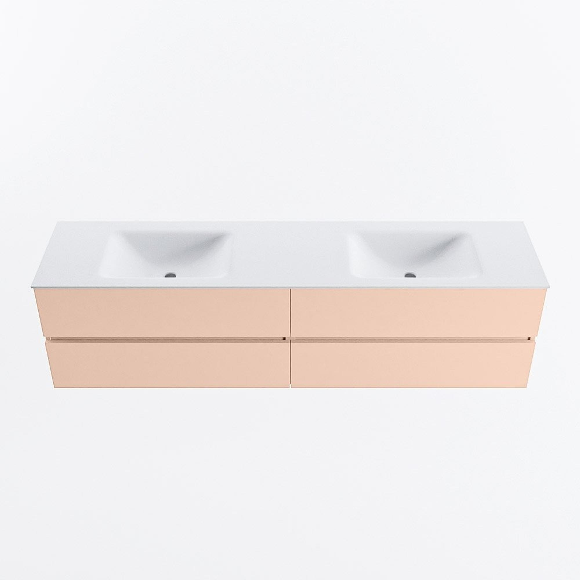MONDIAZ Vica Ensemble meuble de salle de bains - 190cm - meuble bas rosee - 4 tiroirs - lavabo cloud double - 2 trous de robinet - version haute 60cm - talc