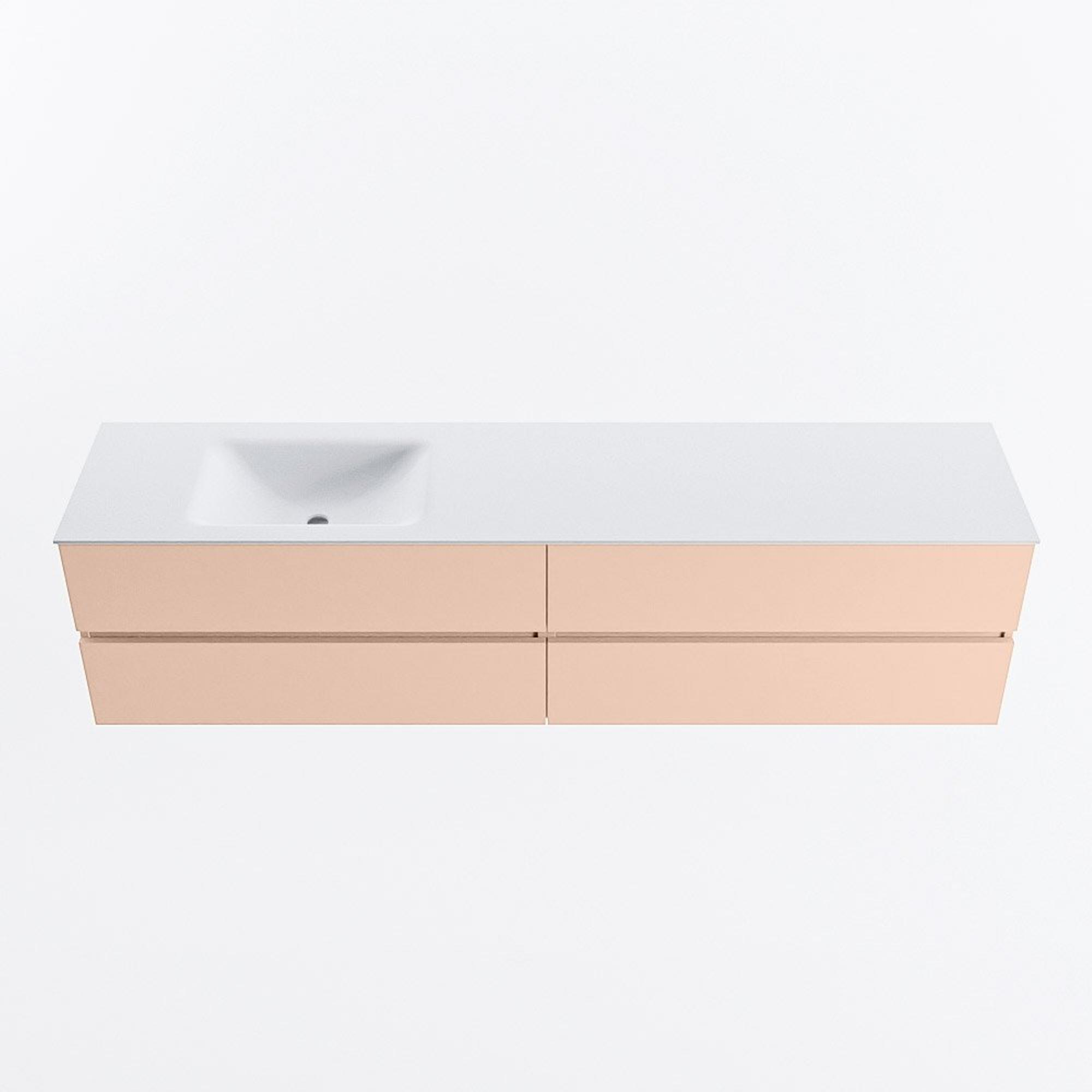 MONDIAZ VICA Ensemble meuble de salle de bains - 200cm - meuble bas rosee - 4 tiroirs - lavabo cloud gauche - sans trous de robinet - version haute 60cm - talc