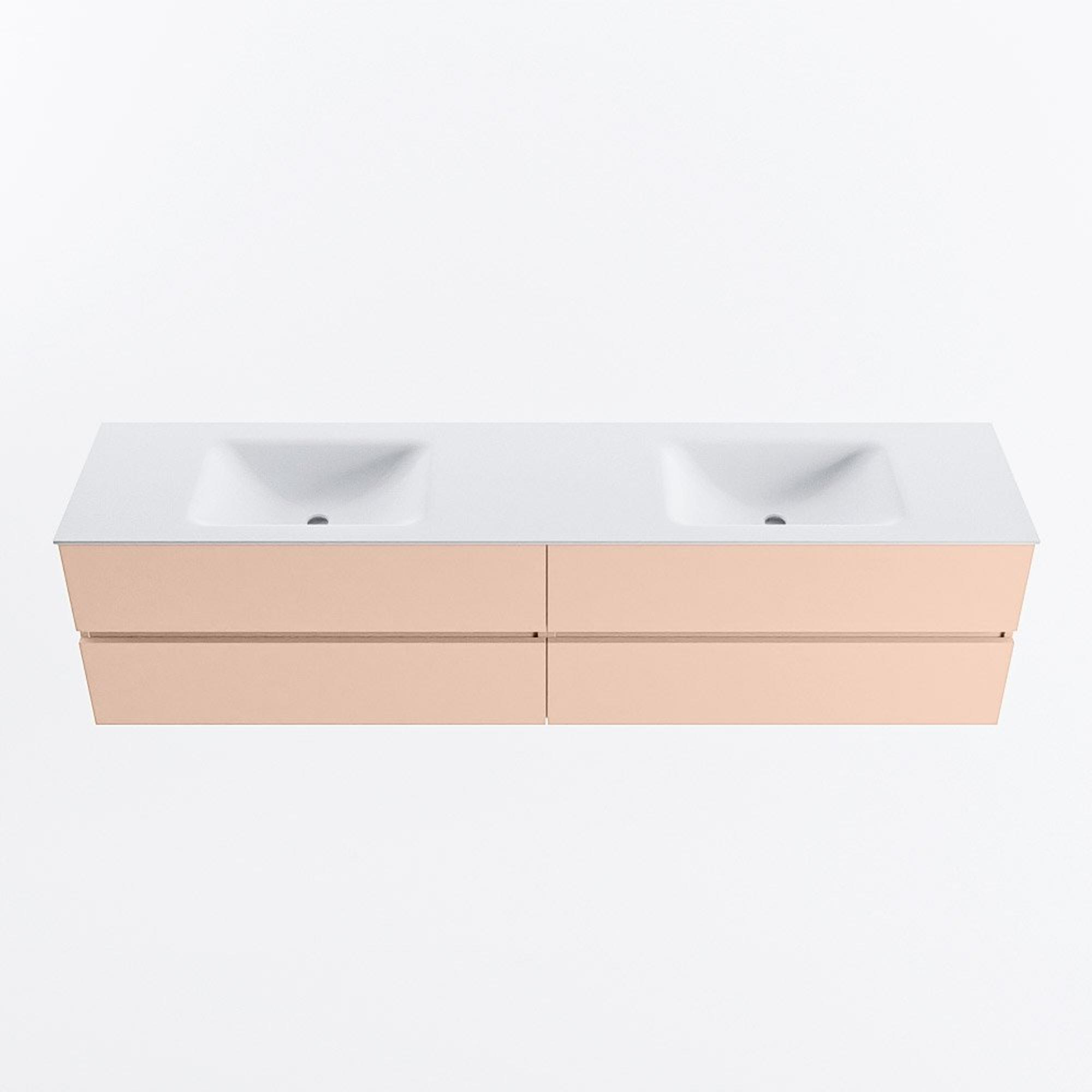 MONDIAZ VICA Ensemble meuble de salle de bains - 200cm - sous-meuble rosee - 4 tiroirs - lavabo cloud double - 2 trous de robinet - version haute 60cm - talc