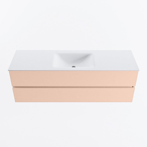 MONDIAZ VICA Ensemble meuble de salle de bains - 150cm - meuble sous-vasque rosee - 2 tiroirs - lavabo cloud central - 1 trou de robinet - version haute 60cm - talc