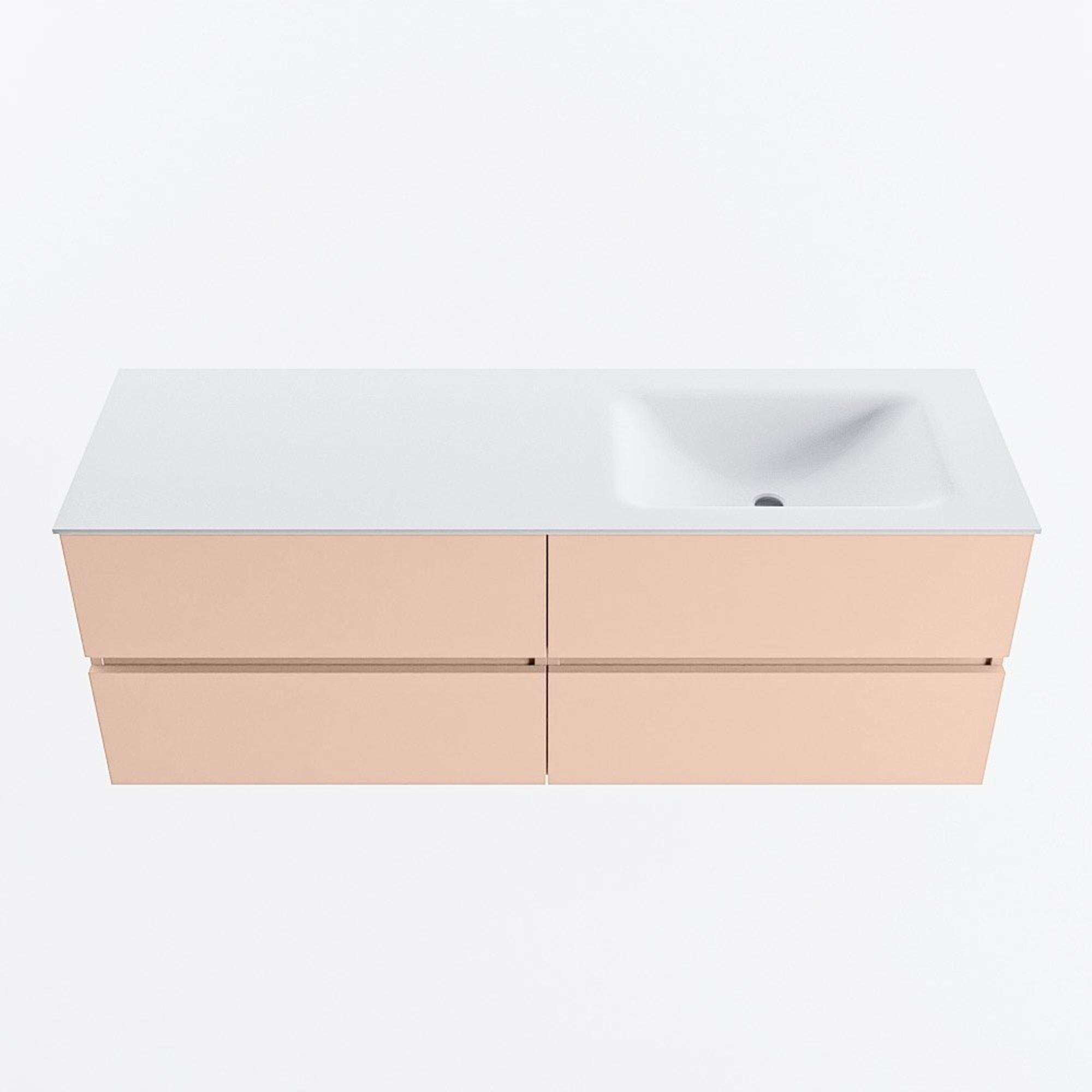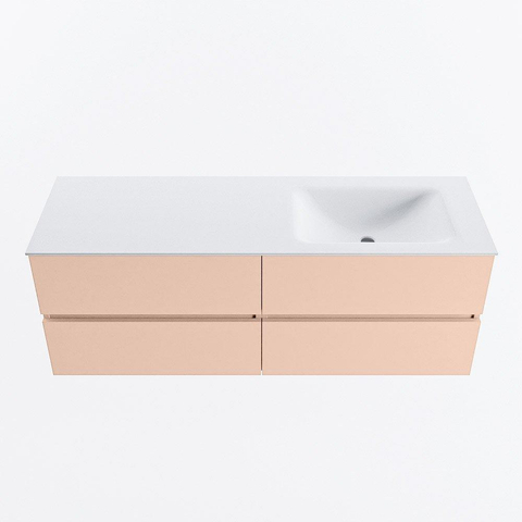 MONDIAZ VICA Ensemble meuble de salle de bains - 140cm - meuble bas rosee - 4 tiroirs - lavabo cloud à droite - sans trous de robinet - version haute 60cm - talc