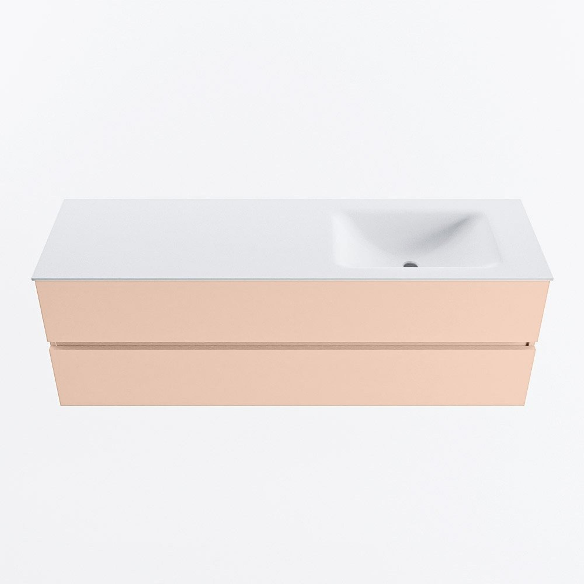 MONDIAZ VICA Ensemble meuble de salle de bains - 150cm - sous-meuble rosee - 2 tiroirs - lavabo cloud à droite - sans trous de robinet - version haute 60cm - talc