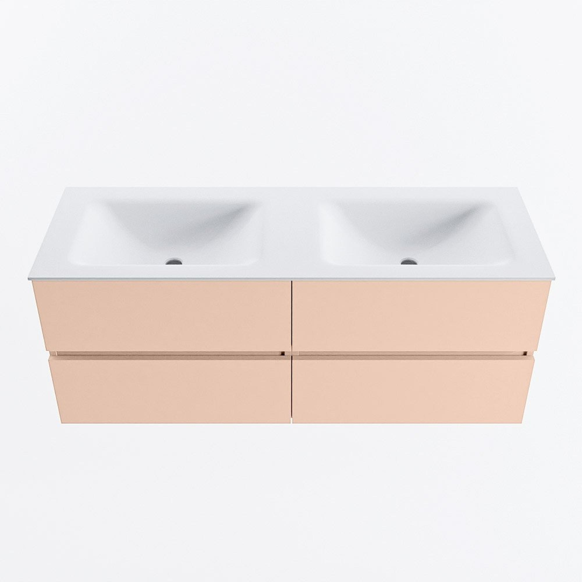 MONDIAZ VICA Ensemble meuble de salle de bains - 130cm - meuble bas rosee - 4 tiroirs - vasque cloud double - sans trous de robinetterie - version haute 60cm - talc