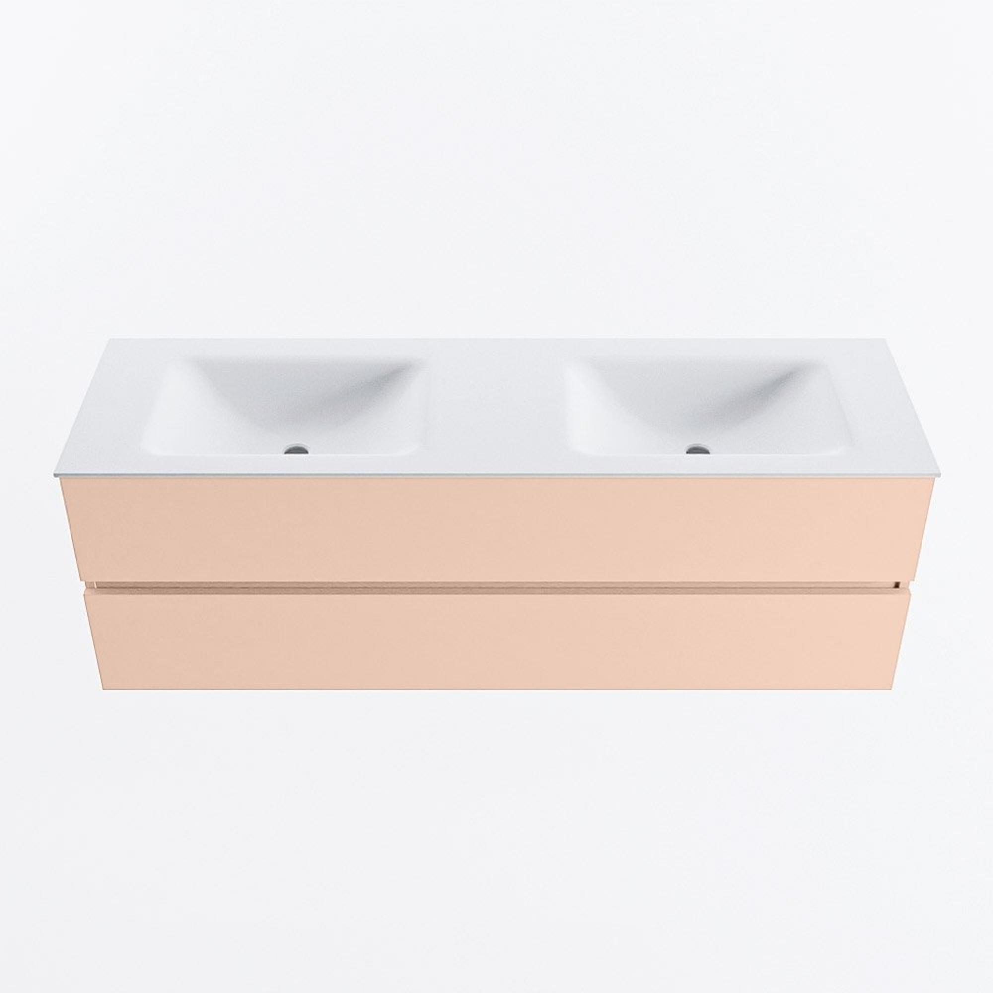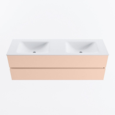 MONDIAZ VICA Ensemble meuble de salle de bains - 150cm - meuble bas rosee - 2 tiroirs - lavabo cloud double - 2 trous de robinet - version haute 60cm - talc